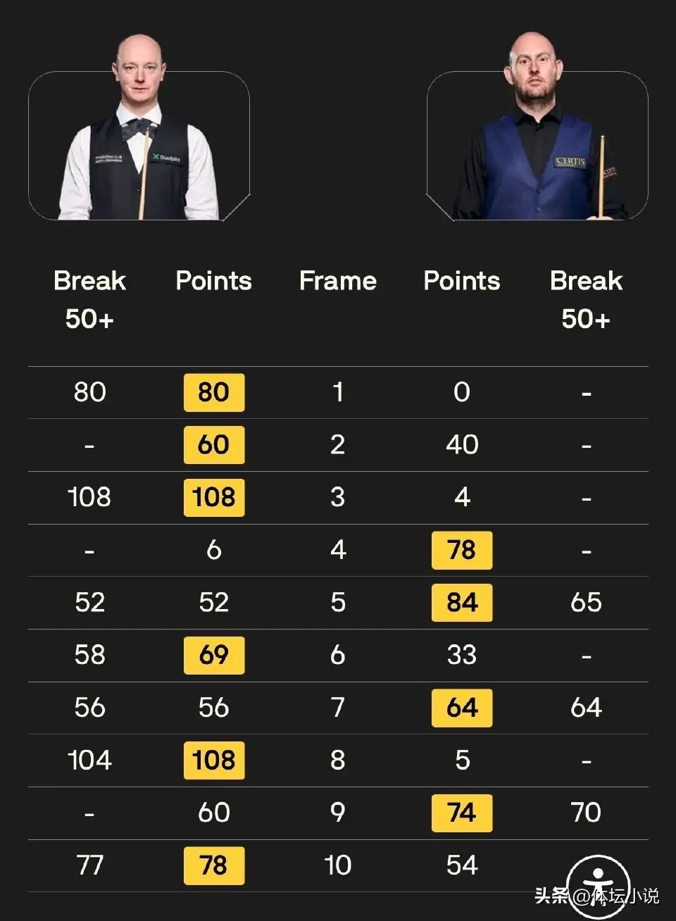 Wakelin went head-to-head with Selt. Both players are outside the top sixteen, making this a highly uncertain contest where whoever performs better on the day would move on. Wakelin started strong, scoring a century break and an 80-point break, winning the first three frames 3-0 and stunning Selt. In the fourth frame, after a fierce battle, Selt fought back multiple times and claimed the frame. Wakelin lost a promising position in frame four, scoring 52 points but was overturned by Selt’s 65-point break, bringing the score to 2-3. In the sixth frame, Wakelin scored 58 points to extend his lead to 4-2. In the eighth frame, Selt staged another comeback with a 64-point break, overtaking Wakelin’s 56 points to narrow the gap to 3-4. Wakelin responded with a century break in the eighth frame to take a 5-3 match point lead. Selt refused to give up in frame nine, scoring 70 points to save a match point and make it 4-5. In the tenth frame, Wakelin turned the tables with a 77-point break to win 6-4 and secure his place in the final!