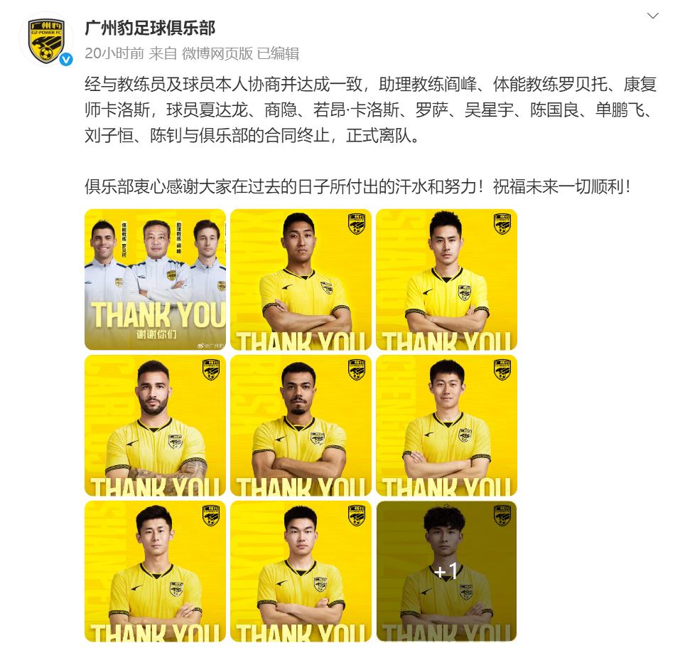 Reporter Wang Wei reports On January 16, Guangzhou Leopards confirmed that players Xia Dalong, Shang Yin, Carlos, Rosa, Wu Xingyu, Shan Pengfei, Liu Ziheng, and Chen Zhao have left the club. Meanwhile, last season’s Chinese Super League players Liao Junjian and Tuo Duolie, as well as longtime CSL competitors Gao Huaze and Zhang Wei, have recently joined the team, which is steadily upgrading its roster for the 2026 campaign to fight for promotion.