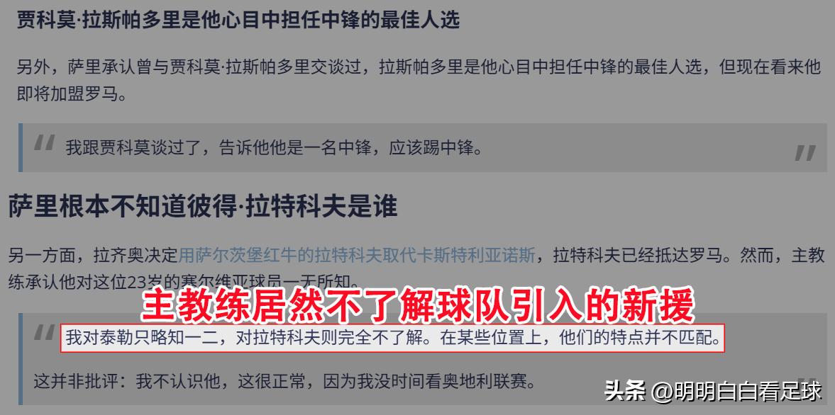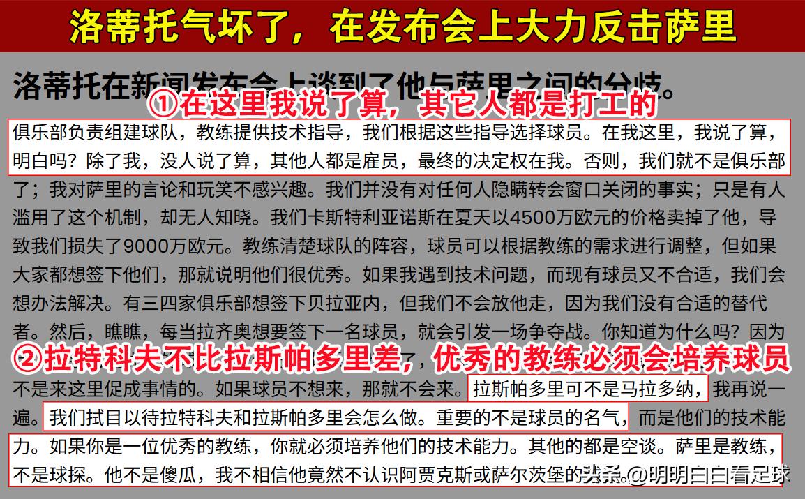 Lotito also feels wronged; this season is just a transition period, and he hasn’t set any goals for the team,not even European qualification is requirednor any trophies; he hasn’t put any pressure on Sarri, so why does Sarri keep complaining?