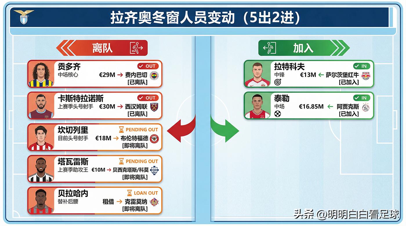 We can see Lazio has released two star-level key players, and three other capable players are about to depart as well.