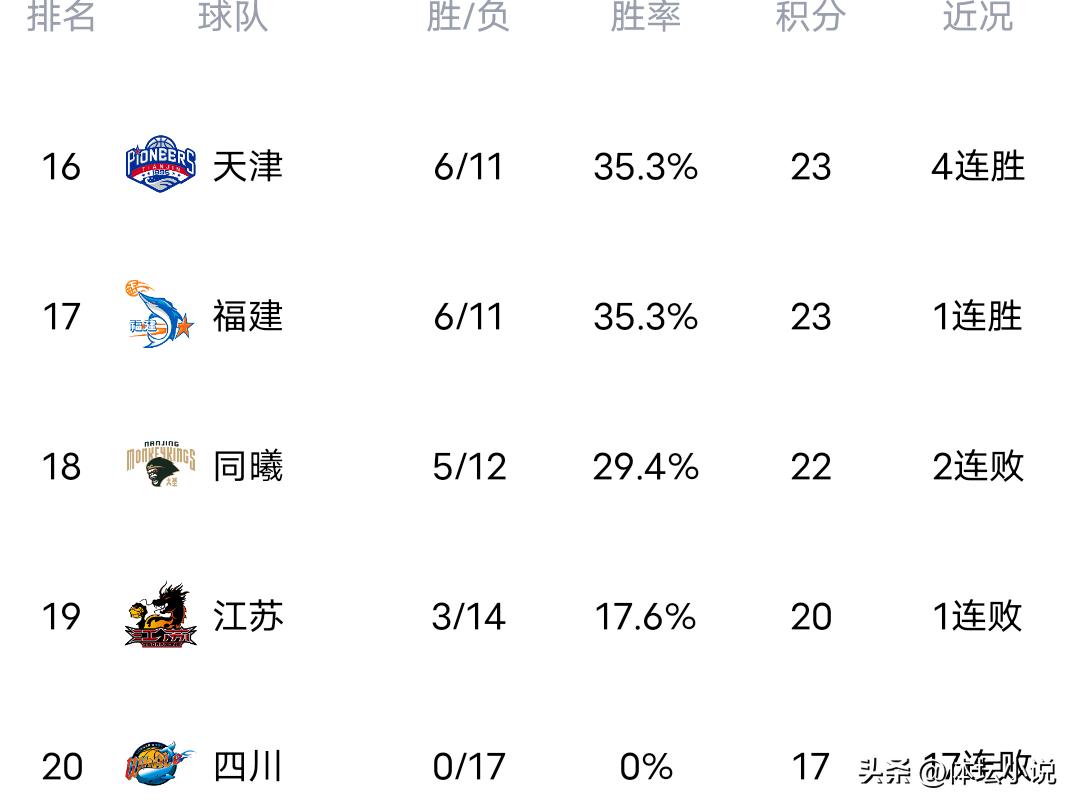 On January 21st Beijing time, the CBA regular season continued with several matches finishing last night. Fujian won 105-91 against Tongxi in a matchup of weaker teams, Jiangsu was heavily beaten 65-89 by Xinjiang, Shanghai triumphed over Beijing 86-67 in a strong contest, Shanxi defeated Liaoning 90-86, Tianjin crushed Ningbo 103-93, and Zhejiang fell short 90-92 to Shenzhen’s last-second shot. Consequently, the updated standings have been revealed, with Shanghai in second, Beijing fifth, and Xinjiang at 15!