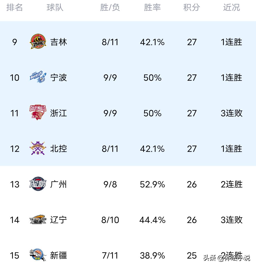 On January 25th Beijing time, the CBA regular season battles resumed last night with three matches concluding. Guangdong beat Shanxi 107-97, in the derby Beijing was defeated by Beikong 82-88, and Tianjin lost narrowly to Jilin 93-96. Consequently, the standings were shaken up: Guangdong rose to second place, Beijing ranked fourth, Shanxi fell to eighth after two losses in a row, and Jilin took ninth place!