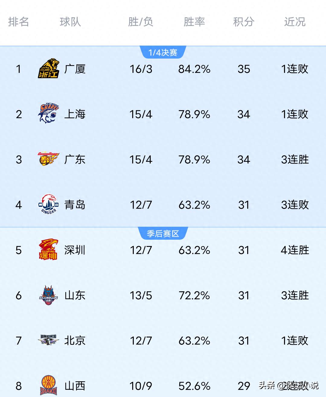On January 26th Beijing time, the CBA regular season proceeded with multiple fierce battles ending last night. Fujian powered past Sichuan 118-82, Shandong caused an upset by defeating top-ranked Guangsha 93-87, Zhejiang narrowly won over a formidable Shanghai 85-82, and Xinjiang routed Liaoning 78-59. Consequently, the updated rankings have Guangsha leading, Shanghai in second, Shandong sixth, and Sichuan at the bottom with no wins!