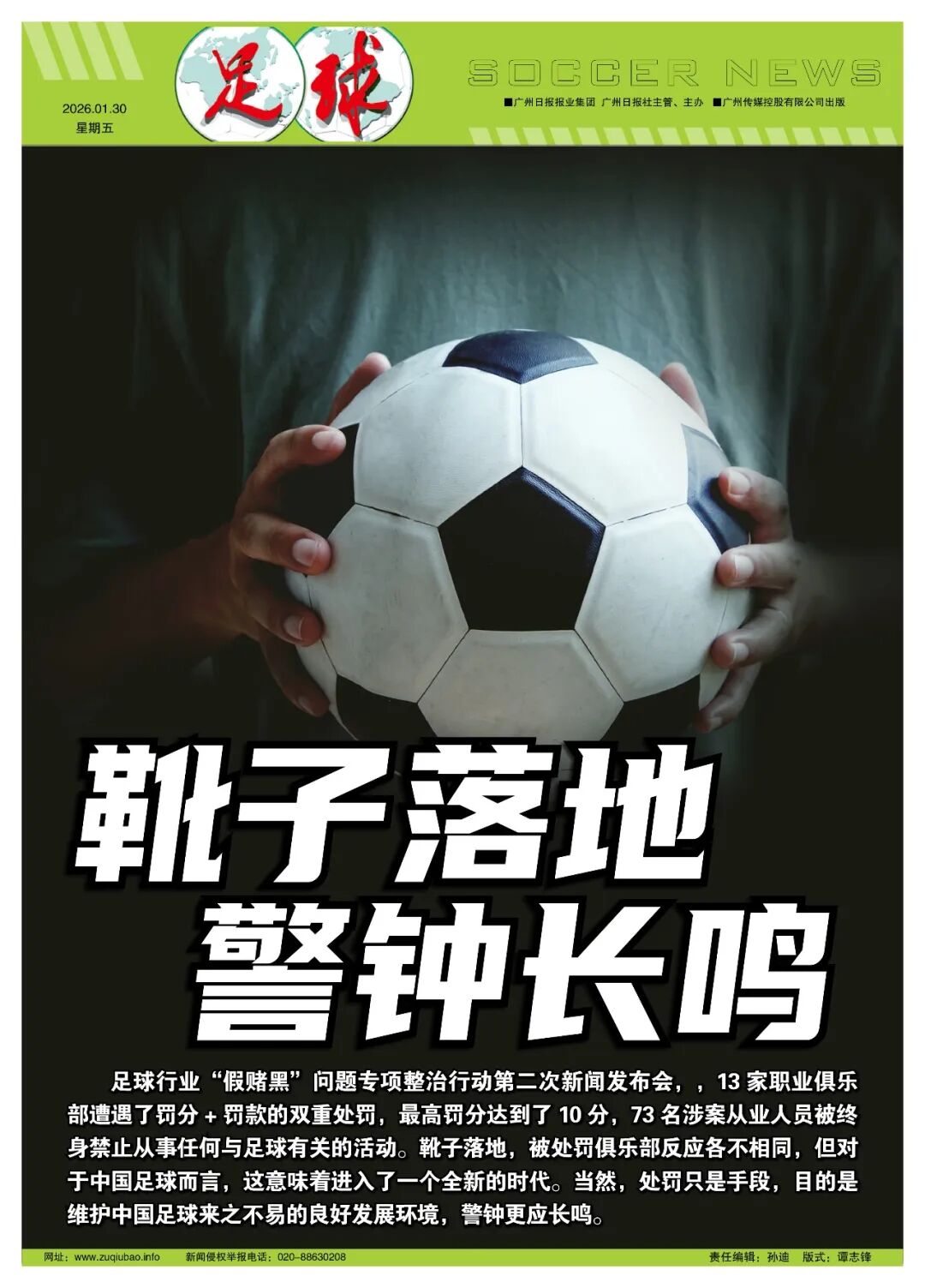 Reported by Chen Yong At 10 a.m. on January 29, the press conference for the special crackdown on match-fixing, gambling, and corruption in the football industry took place on the 15th floor of Shidong International, the Chinese Football Association’s headquarters. Thirteen professional clubs were subjected to both point deductions and fines, with the most severe penalty being a deduction of 10 points. Seventy-three involved personnel received lifetime bans from all football-related activities, while three individuals were banned for five years (the ban period runs from January 29, 2026, to January 28, 2031).