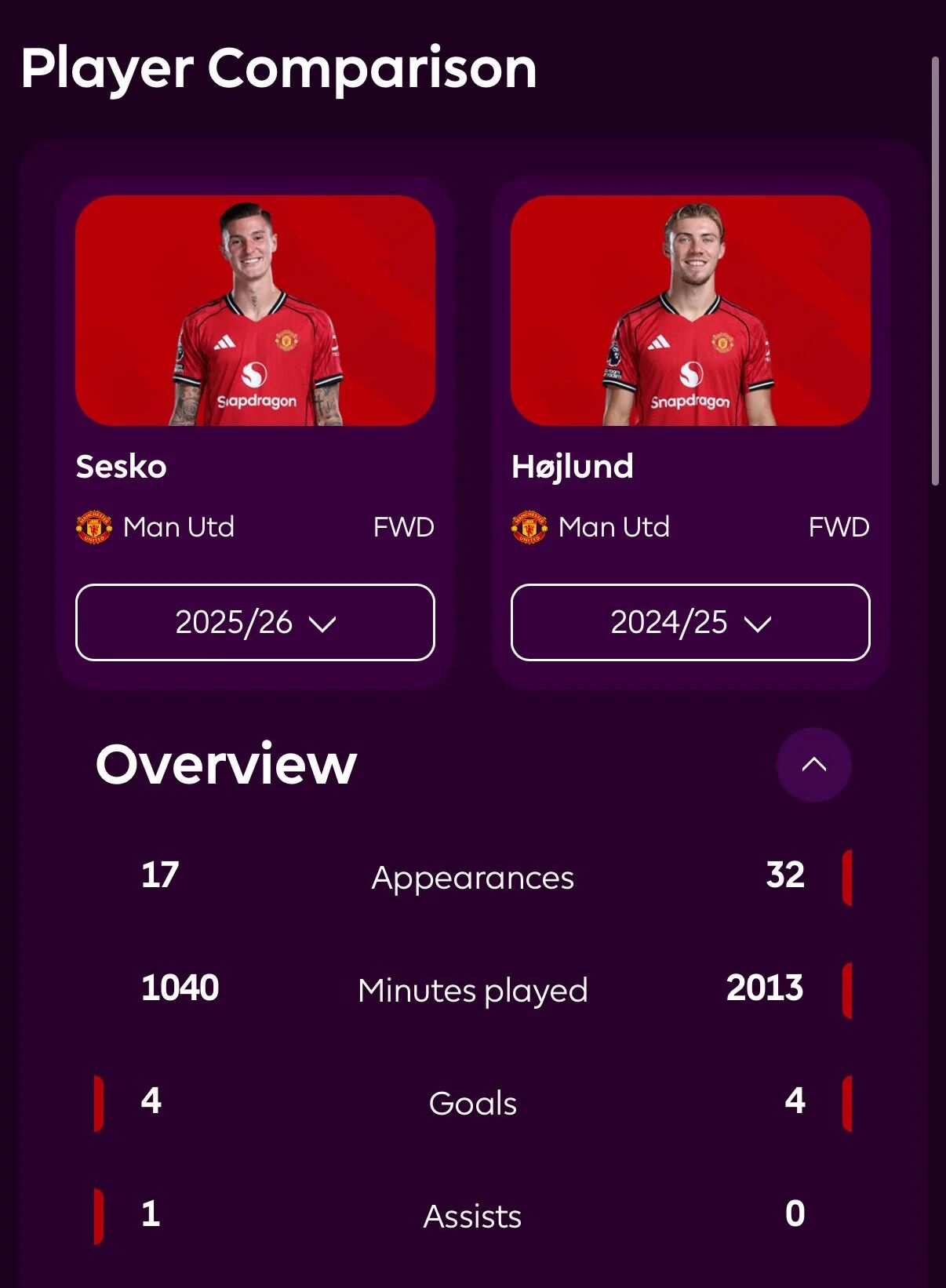 But Amorim's usage of Šeško did not yield results, with the Slovenian forward scoring only 2 goals. Carrick has been more fortunate, with Šeško scoring 3 goals in 6 substitute appearances under him. This might be thanks to interim manager Darren Fletcher, who managed between them. Although Fletcher's team did not win in two games, he boosted Šeško's confidence. Šeško started both games under Fletcher and scored 3 goals, laying the foundation for becoming an impact substitute under Carrick.