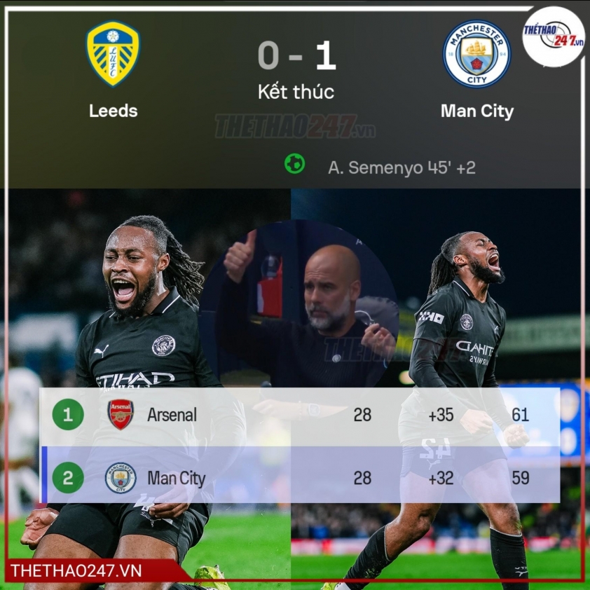 His gamble helped Leeds increase pressure on Gianluigi Donnarumma's goal, but they couldn't find an equalizer. This result allows Man City to reduce the gap to league leaders Arsenal to just 2 points, while Leeds remain 6 points above the relegation zone.