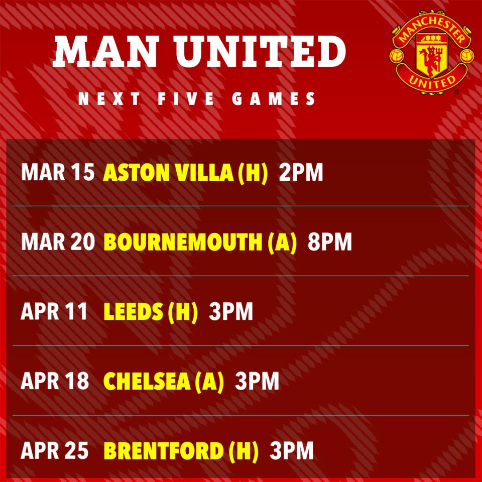 Carrick was furious after the match and publicly called on United's players to reflect. For the remainder of the season, United still have many "gaps" in their schedule. Their next match is not until 10 days later, on March 15, when they will host Aston Villa at Old Trafford.
