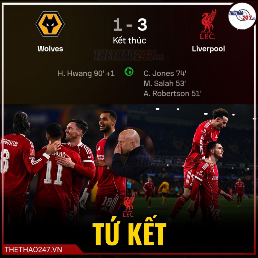 Early morning on March 7 (Vietnam time), Liverpool traveled to Wolves' home ground for the FA Cup quarter-final match. After a disappointing loss in the Premier League a few days earlier, coach Arne Slot and his team entered the game with great determination to restore their image.