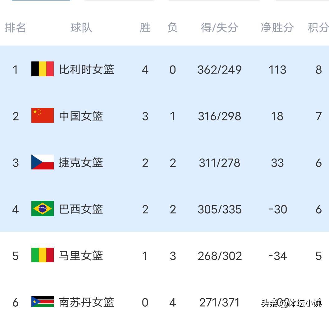 The group for the Chinese women's basketball team also had clear strength disparities. European Cup champion Belgium had already qualified for the World Cup early, so five teams were competing for three spots. Our pressure was relatively low. Despite issues with coaching and guard performance, the group opponents were weaker. We only lost to Belgium and defeated Mali, South Sudan, and Czech Republic, successfully securing a qualification berth. That's truly excellent!