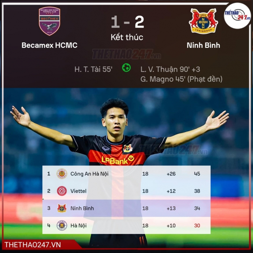 Ninh Bình dramatically defeated Becamex TP.HCM in round 18 of V.League 2025/26, while also welcoming the good news that captain Nguyễn Hoàng Đức has recovered from injury and is ready to return.