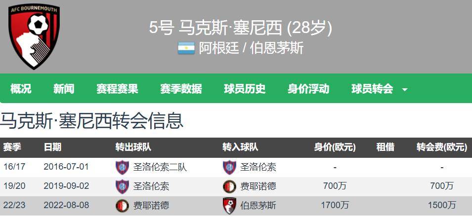 Senesi joined Bournemouth from Feyenoord in the summer 2022 transfer window for a fee of €15 million. During his time with the Cherries, he has played 122 matches across all competitions, scoring 6 goals and providing 9 assists.