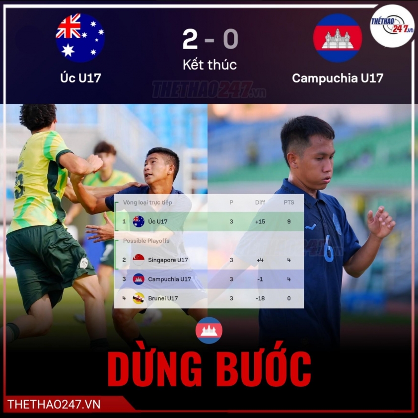 With the format selecting only the three group winners and the best-performing runner-up for the semifinals, that scenario of Australia finishing second in Group C had made the competition for runner-up spots tense, especially for teams in Groups A and B. However, the actual on-field events did not unfold in that unfavorable direction. Cambodia could not create a surprise against the superior opponent, and this result inadvertently opens a clear advantage for Vietnam U17 in the race to secure a semifinal ticket in case the red-shirted squad cannot achieve the top position in Group A.
