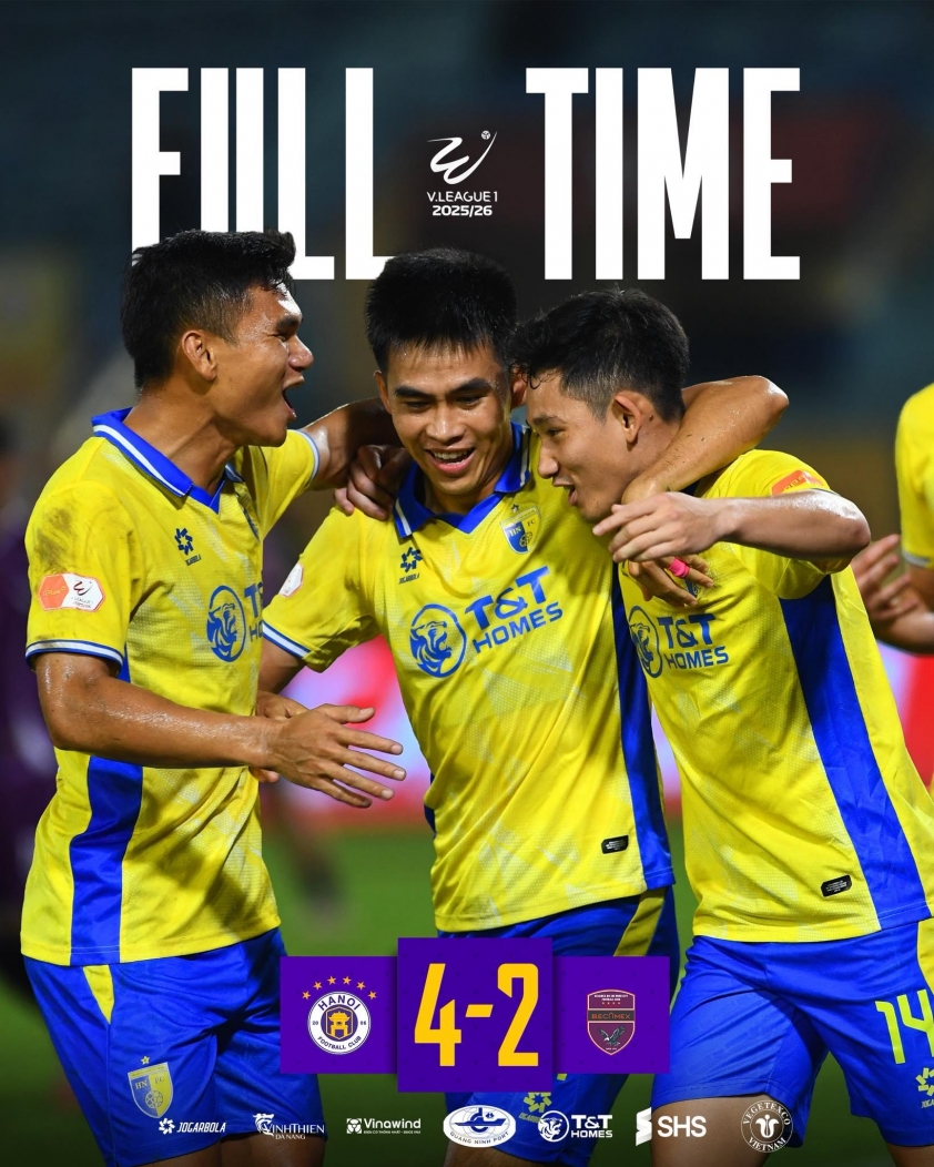 The 4-2 victory over Becamex TP.HCM in round 19 not only helped Hanoi FC maintain its position in the championship race but also showcased the impressive resilience of the capital's team. Despite conceding a goal early due to a lapse in concentration, the players under Hanoi FC's coach quickly regained control, played explosively, and convincingly turned the tide with goals from Hai Long, David Fisher, and a brace from naturalized striker Do Hoang Hen.