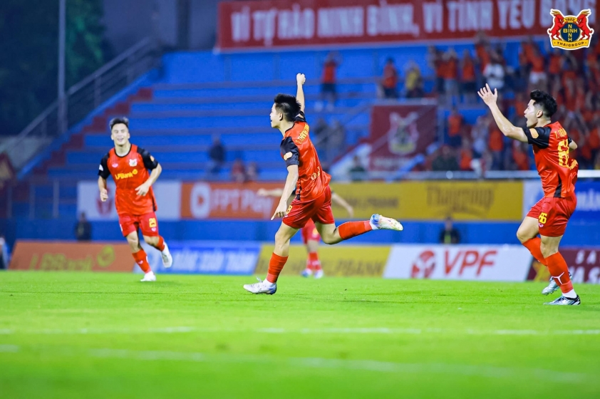 After continuous siege attempts, Ninh Bình scored the third goal at minute 61. From a favorable cross by Fred Friday, Lê Văn Thuận easily tapped the ball into the empty net, marking the third consecutive match in which he scored for the capital city team.