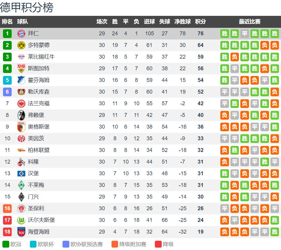 First:The situation of both teams! After 29 rounds of the Bundesliga, Bayern has 24 wins, 4 draws, and 1 loss, accumulating 76 points and ranking first, leading second-place Dortmund by as much as 12 points. With only 5 rounds remaining in the Bundesliga, this means Bayern needs just 1 more point to secure the championship; Stuttgart has 17 wins, 5 draws, and 7 losses, accumulating 56 points and ranking fourth, leading fifth-place Hoffenheim by 2 points, holding an advantage in the race for the top four. In the last Bundesliga round, Bayern won 5-0 away against St. Pauli, and in the midweek Champions League, they defeated Real Madrid 4-3 at home, advancing to the semifinals with a double victory; Stuttgart won 4-0 at home against Hamburg, achieving 3 wins in the last 4 rounds, showing very good form.