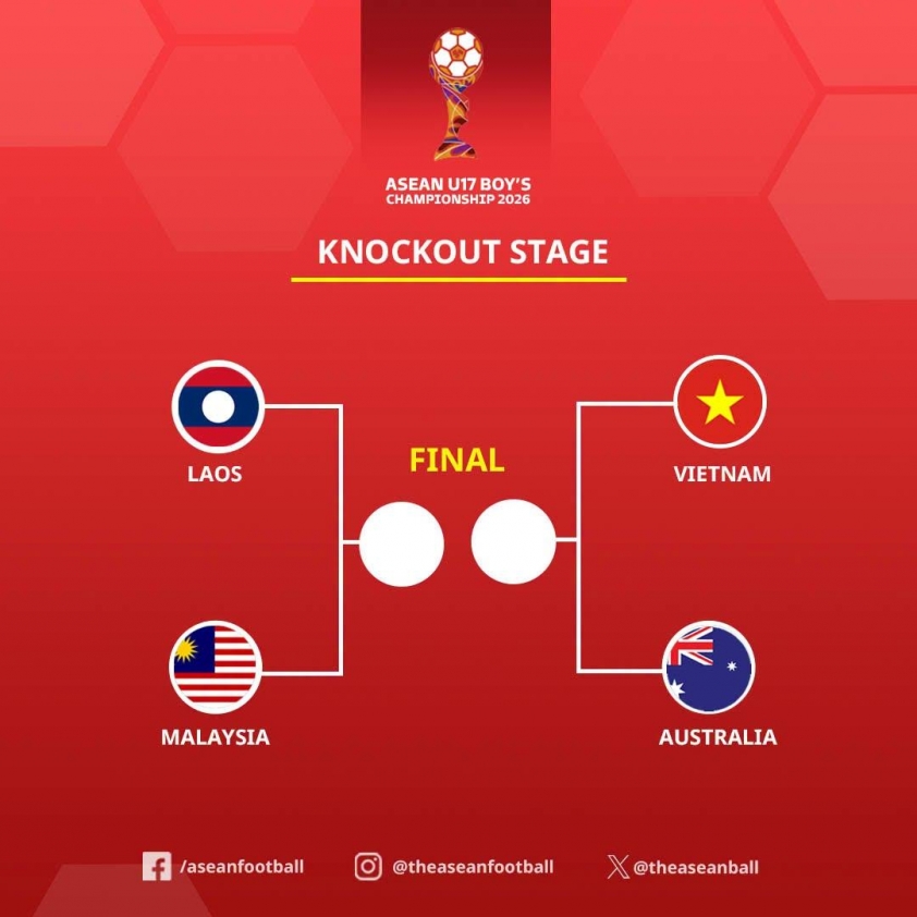 The four teams advancing to the ASEAN U17 2026 semifinals have been finalized: Vietnam, Malaysia, Laos, and Australia.