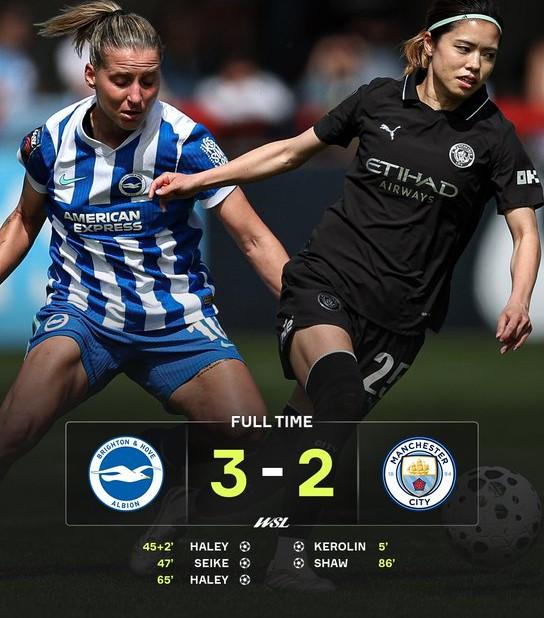 Despite opening the scoring in the 5th minute through Kerolin, Manchester City could not maintain their advantage throughout the first half, as Madison Haley equalized for Brighton during stoppage time.