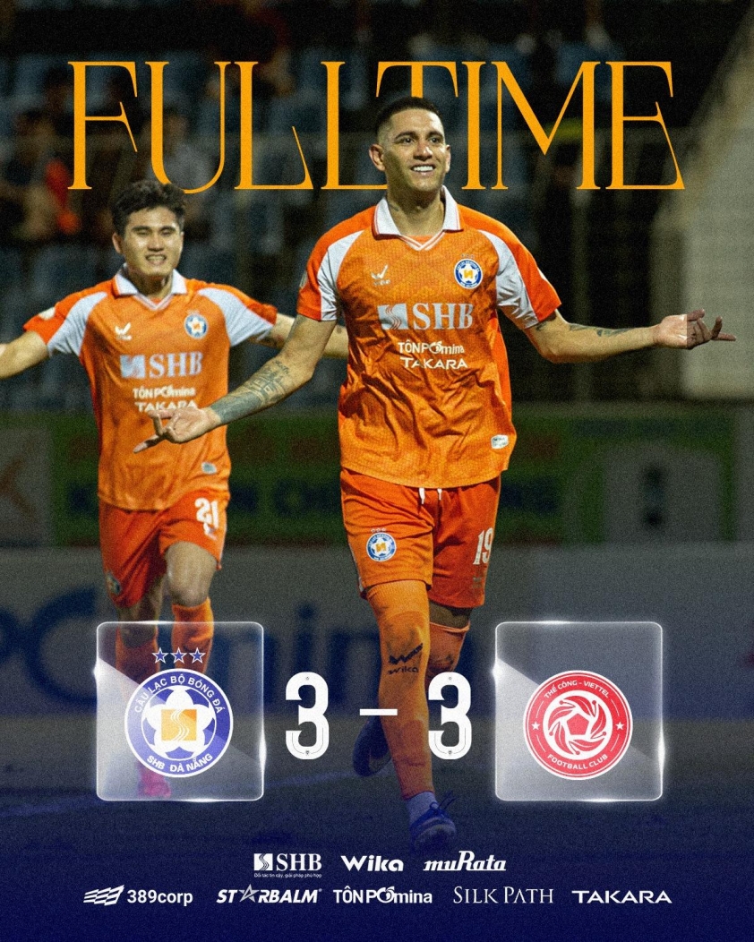 In a highly dramatic match at Hoa Xuan Stadium, Da Nang secured a valuable point by drawing with The Cong Viettel 3-3 thanks to a penalty kick goal in the final minutes of stoppage time. This result not only helps the Han River team maintain hope of staying in the league but also boosts confidence in the decisive phase of the season.