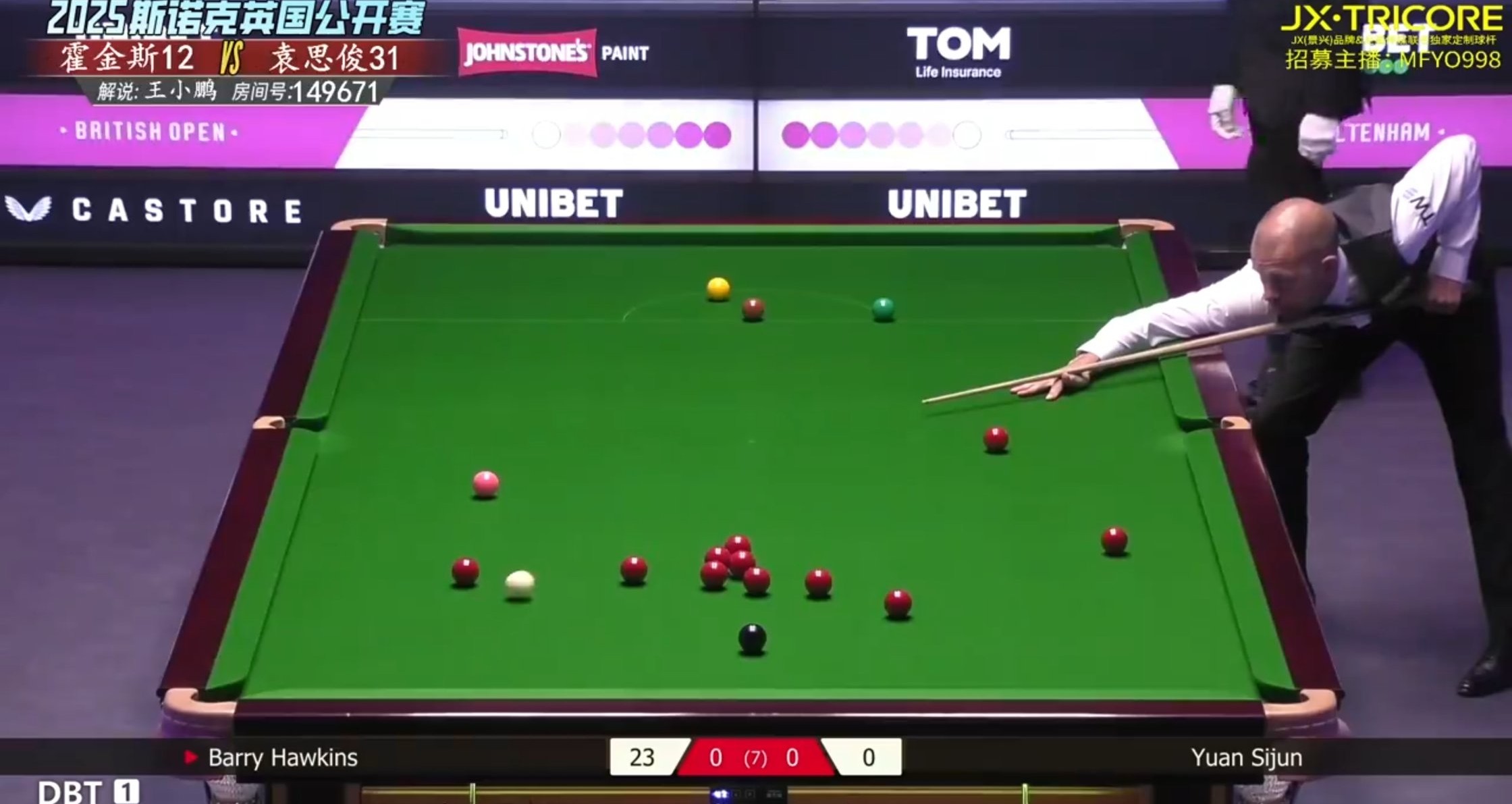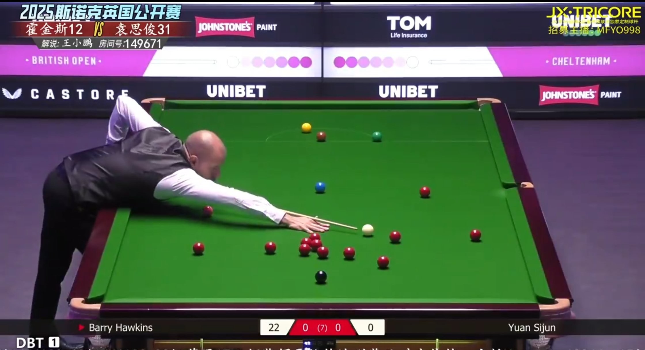 Migu Video is live streaming the Snooker UK Championship match featuring Yuan Sijun against Barry Hawkins.