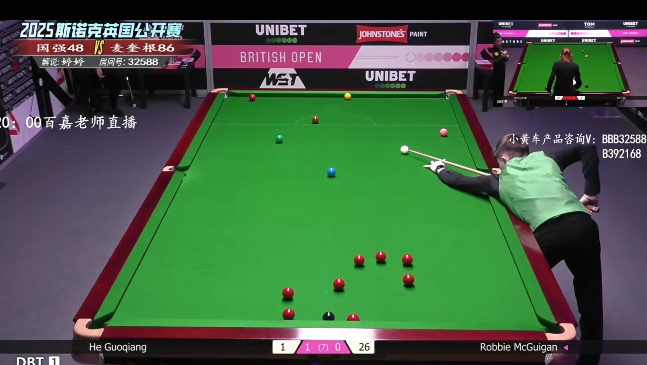 Huya's live stream is currently showing the Snooker UK Championship match between He Guoqiang and McGuigan.