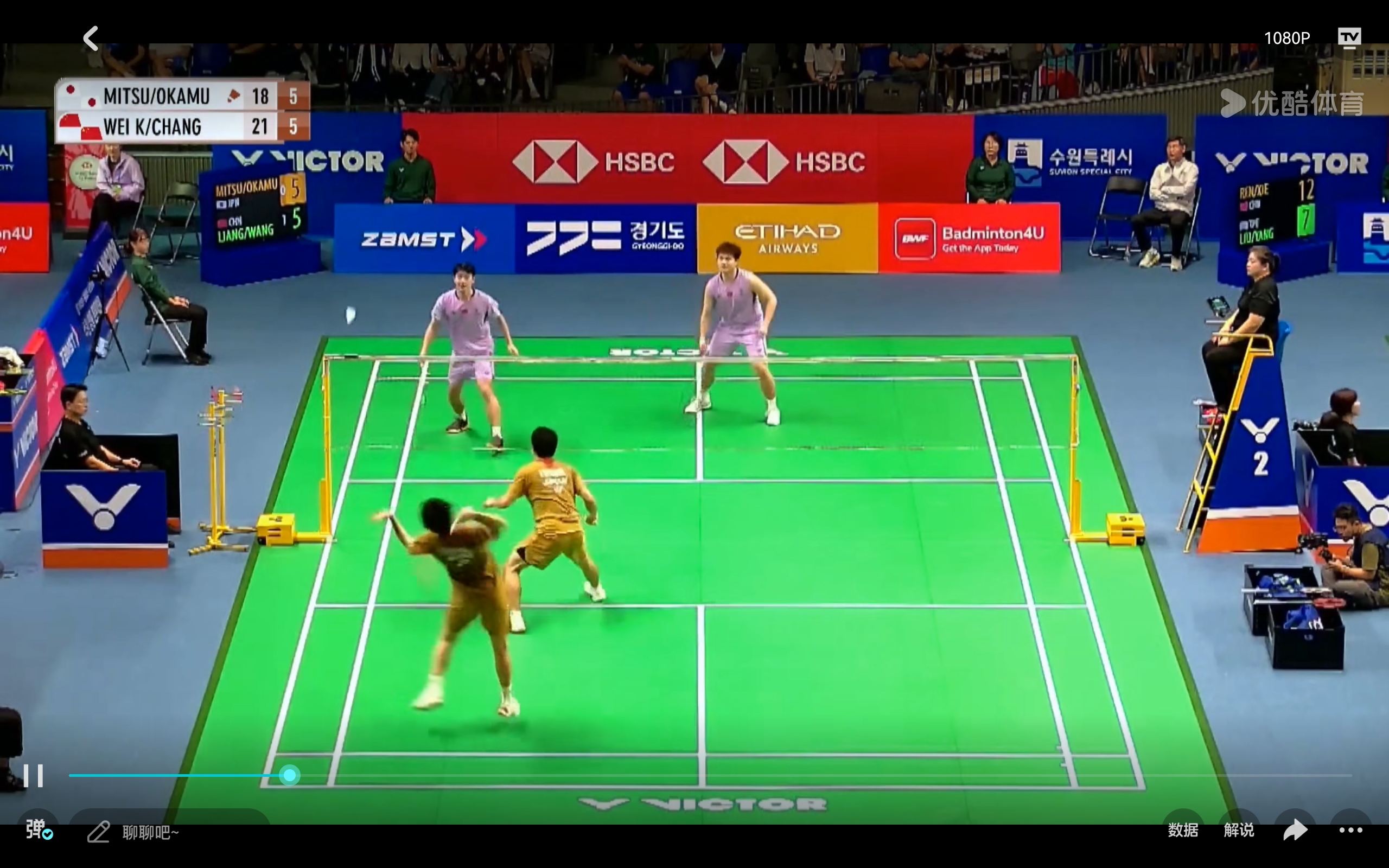 Yangshipin and Youku are live streaming the Korea Open Badminton match featuring Liang Weikeng/Wang Chang against Mitsuhashi Kenya/Okamura Hiroki.