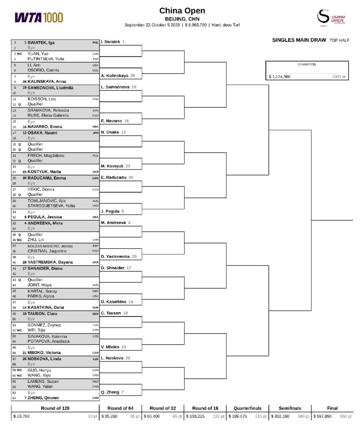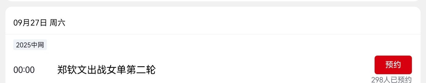 According to the live broadcast schedule announced by CCTV-5, Zhang’s debut and second-round match at the China Open is on September 27, 2025. The match will most likely take place on the Diamond Court, with a tentative start time guessed to be 7 PM based on last year’s debut timing. We await the official schedule from the China Open organizers.