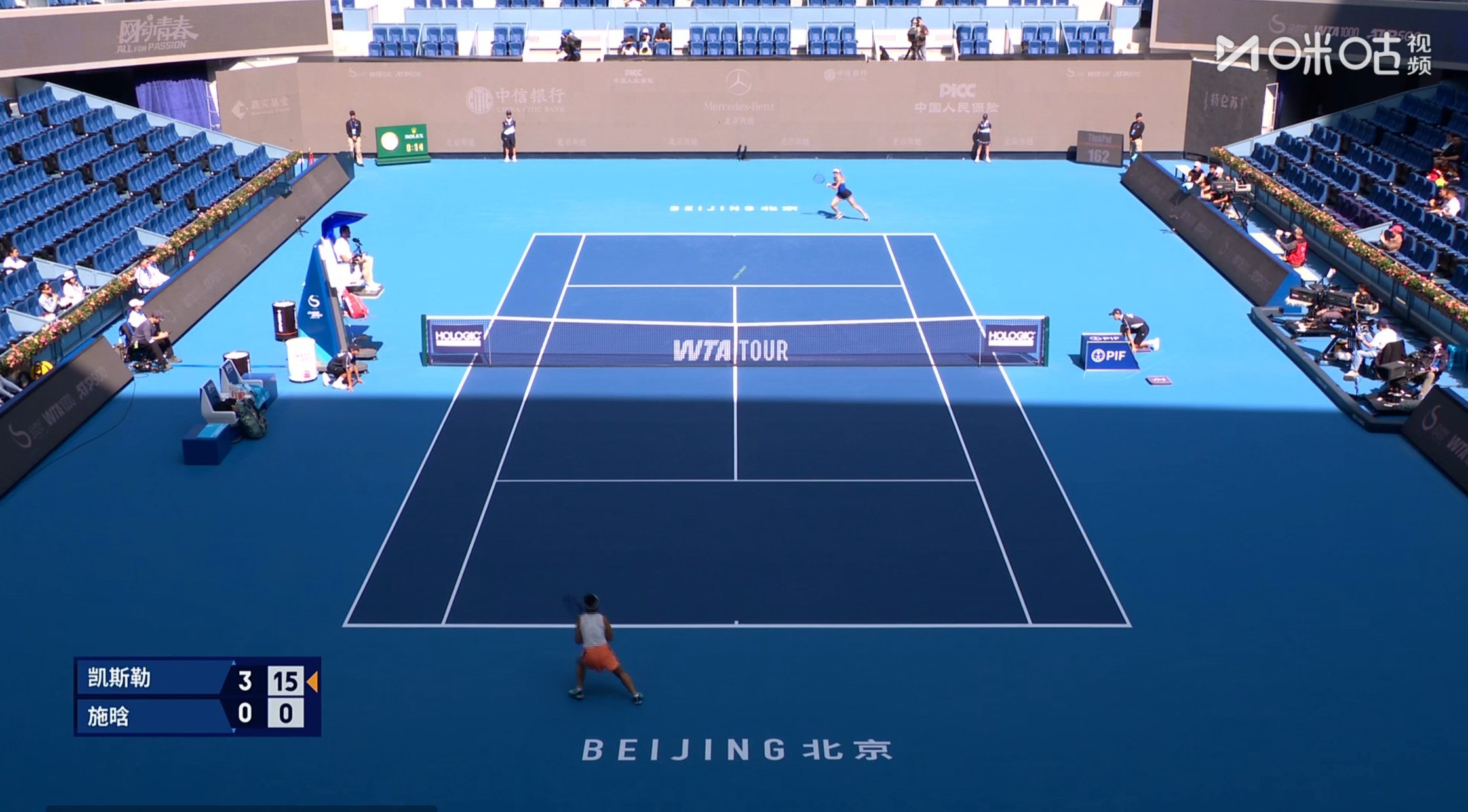 This match is a best-of-three sets format, and they are now playing the first set, with Shi Han down 0-3 in points to Keisler.