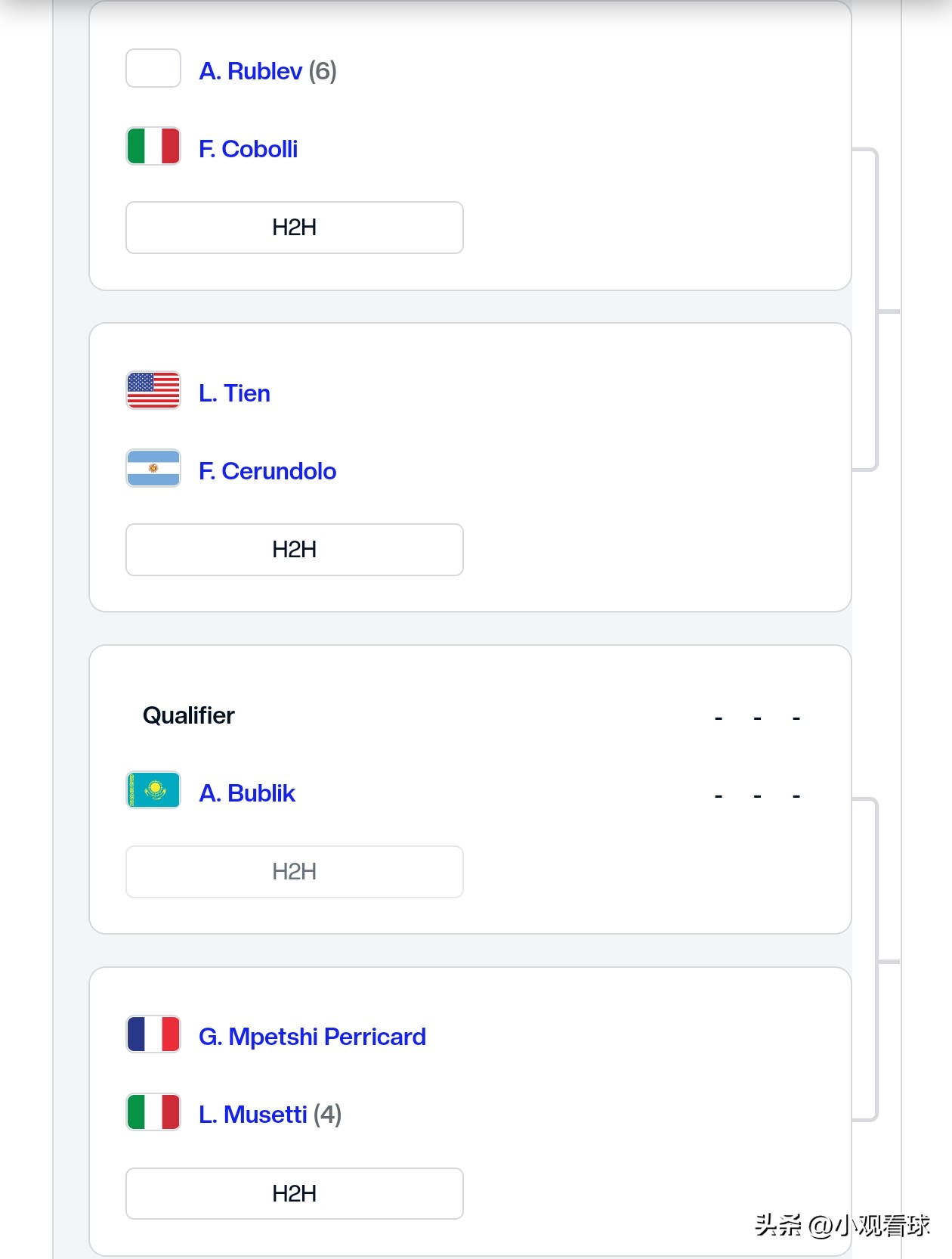 Bublik is the most unpredictable factor in the third quarter.He faces a qualifier in the first round. Just yesterday, Bublik won the Hangzhou Open by beating Royer 7-6(4), 7-6(4), a scoreline that can frustrate any opponent. This is Bublik’s fourth tour title this season. He will have at least two days’ rest. He might either exit early due to incomplete recovery or keep fighting through to the quarterfinals. A second-round match against Musetti would be very exciting.