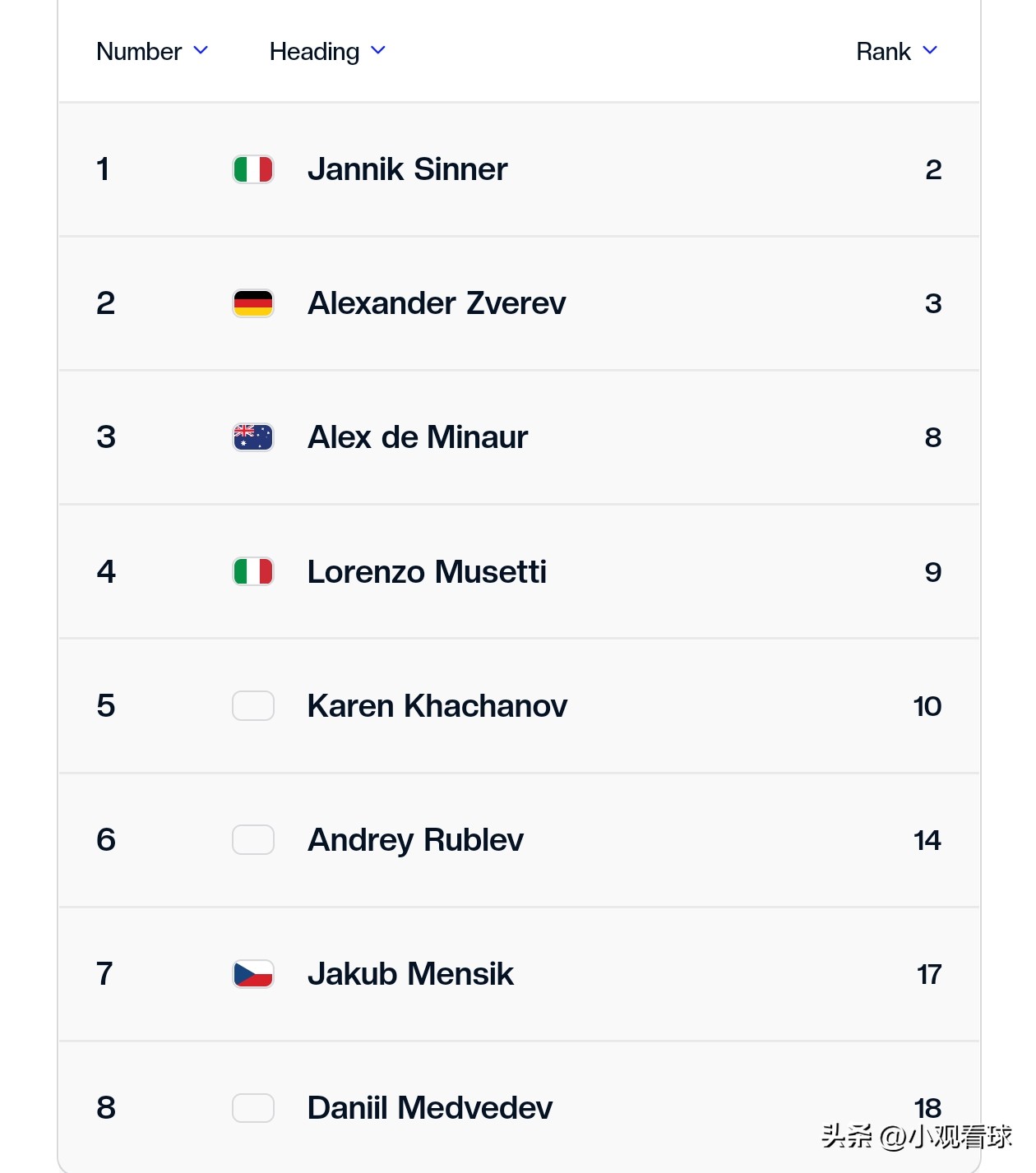 The ATP 500 China Open is ready to launch. Out of the eight seeds, four are current top 10 players: Sinner, Zverev, De Minaur, and Musetti. There are also three ex-top 10 players: Khachanov, Rublev, and Medvedev. This roster is notably more powerful than the Tokyo 500 event starting simultaneously, where the eight seeds are Alcaraz, Fritz, Rune, Ruud, Makhachev, Auger-Aliassime, Shapovalov, and Tiafoe, with only Alcaraz and Fritz in the top 10.