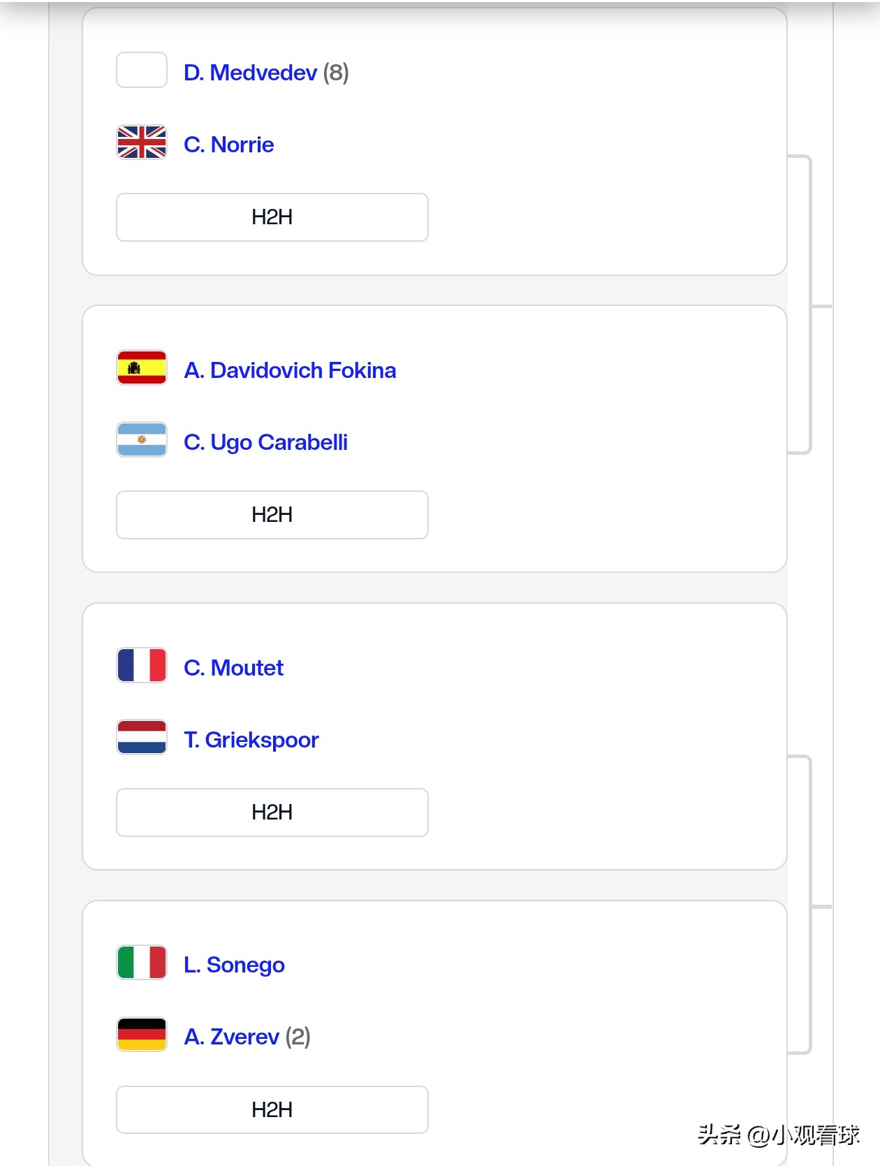 Two years ago, it would have been certain that Medvedev (8) and Zverev (2) would meet in the quarterfinals. But with Medvedev’s current form, he can’t even beat Wu Yibing and is uncertain against Norrie.