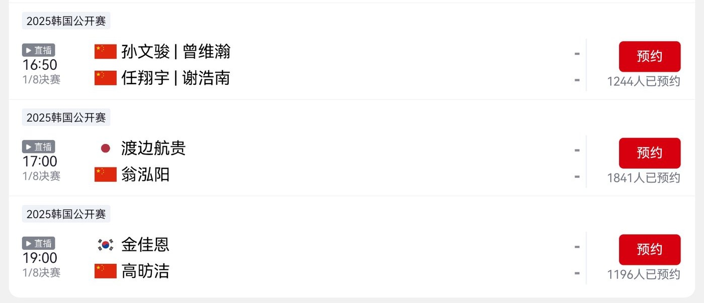 Attached is tonight’s (September 25, 2025) schedule, with Chinese women’s singles player Han Yue, men’s singles player Weng Hongyang, and men’s doubles competing. We hope they defeat their opponents and advance to the quarterfinals.