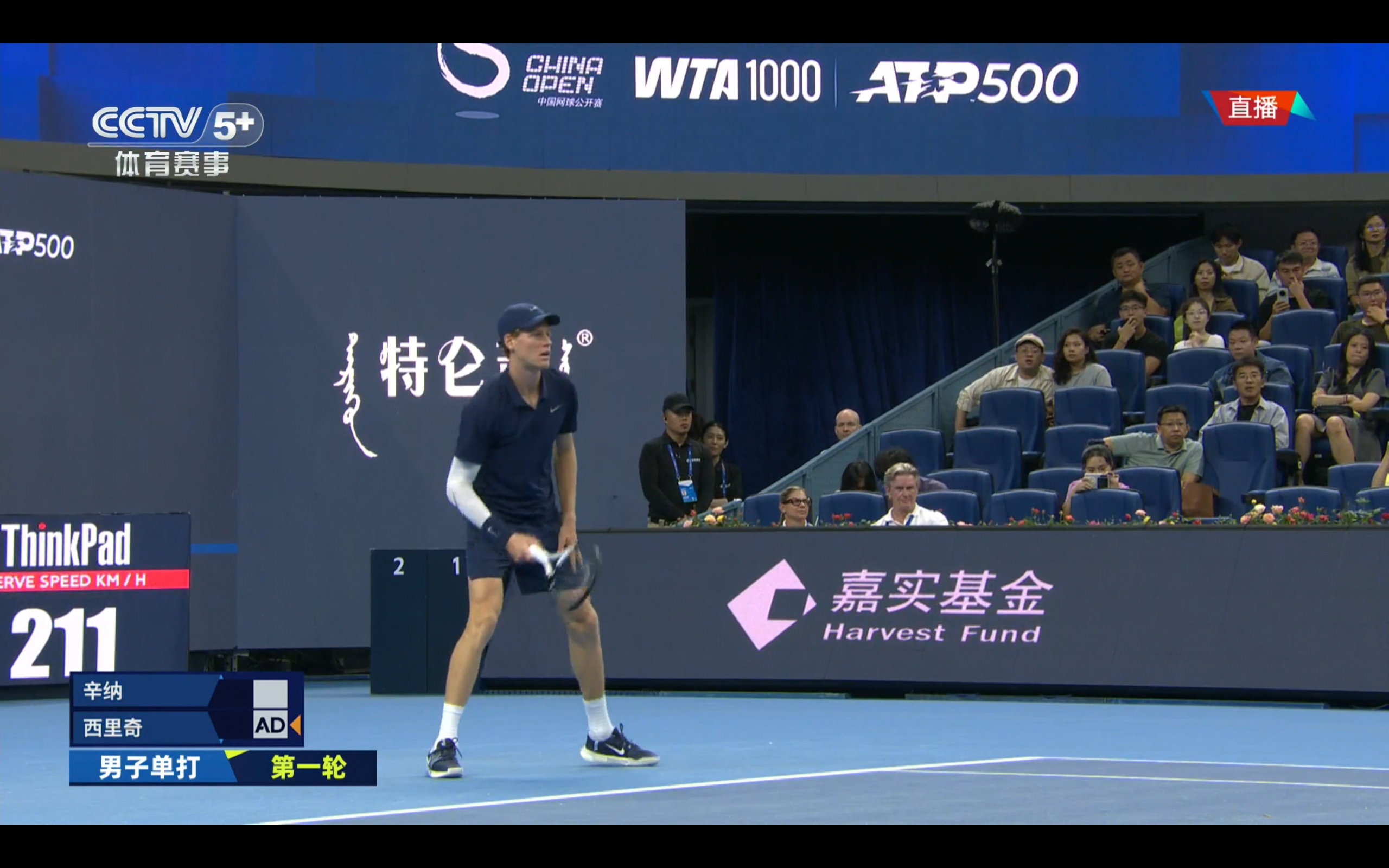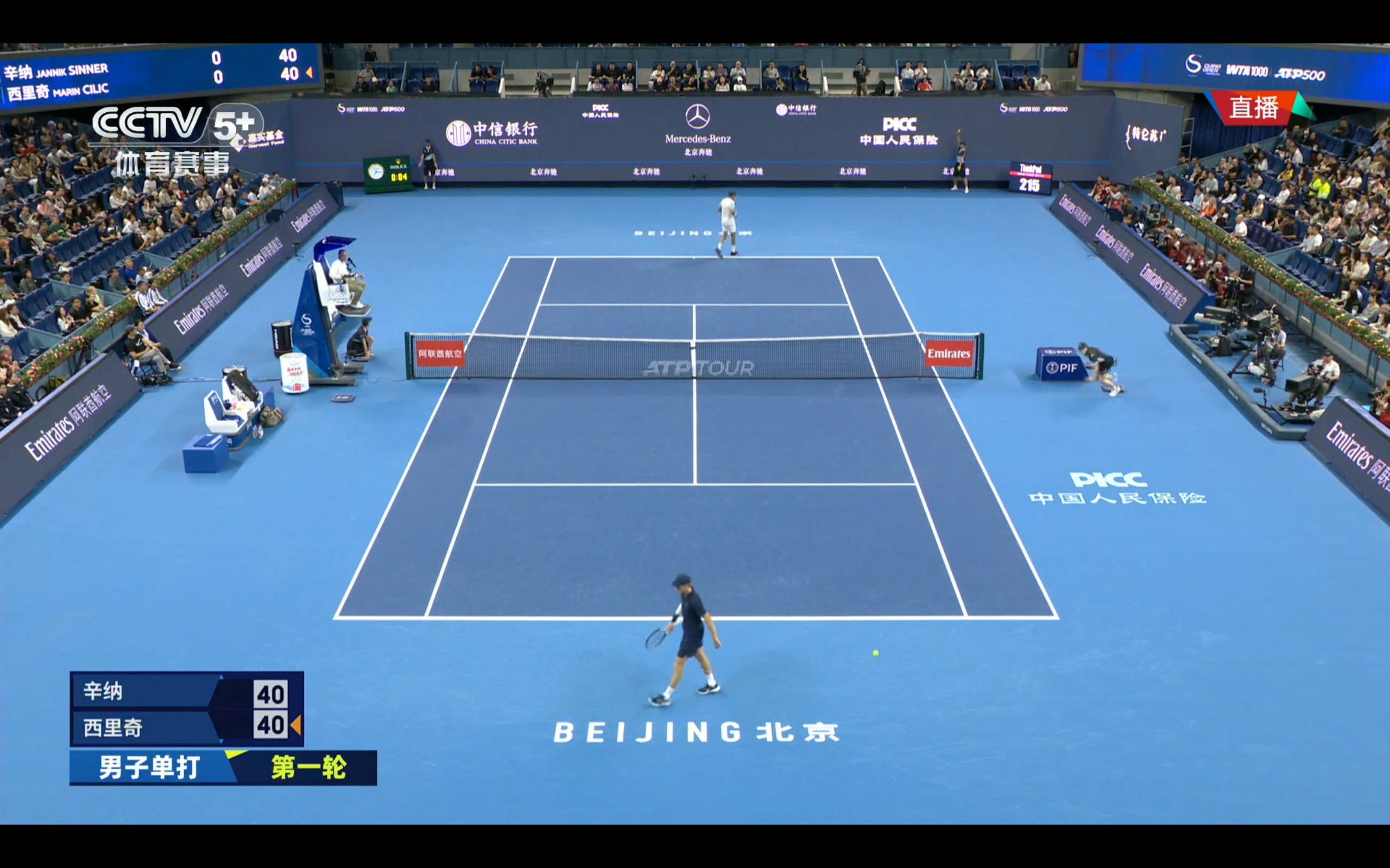 CCTV-5+ and Yangshipin are live streaming the first round men's singles match between Sinner and Cilic at the China Open.
