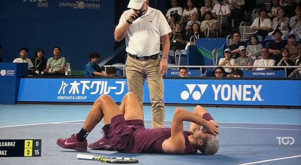 Replays revealed that Alcaraz’s ankle gave way suddenly while running, causing him to be unable to continue immediately and grimacing in pain while clutching his left ankle. More alarming was that although slow-motion replays showed no obvious sprain, many fans feared a possible Achilles tendon rupture. Fortunately, after a brief medical assessment and treatment, Alcaraz wrapped his ankle and continued playing.