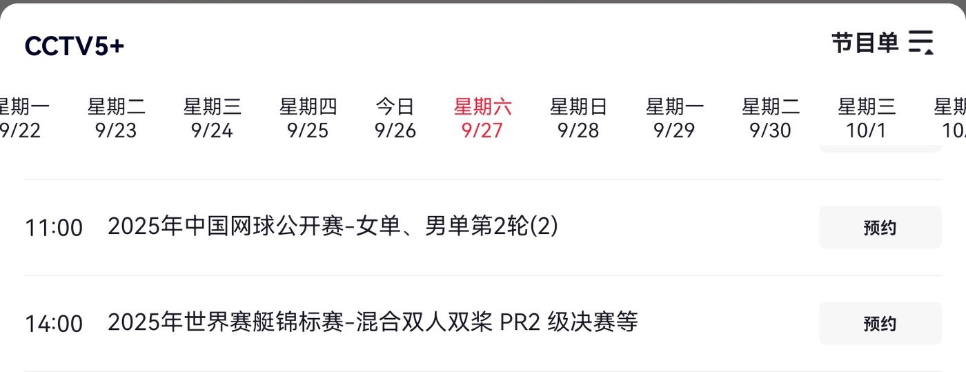 Tomorrow (September 27, 2025), the China Open will conduct its second-round matches, with Chinese players Zheng Qinwen, Yuan Yue, Zhu Lin, and Wang Xiyu participating, broadcast live on CCTV-5.