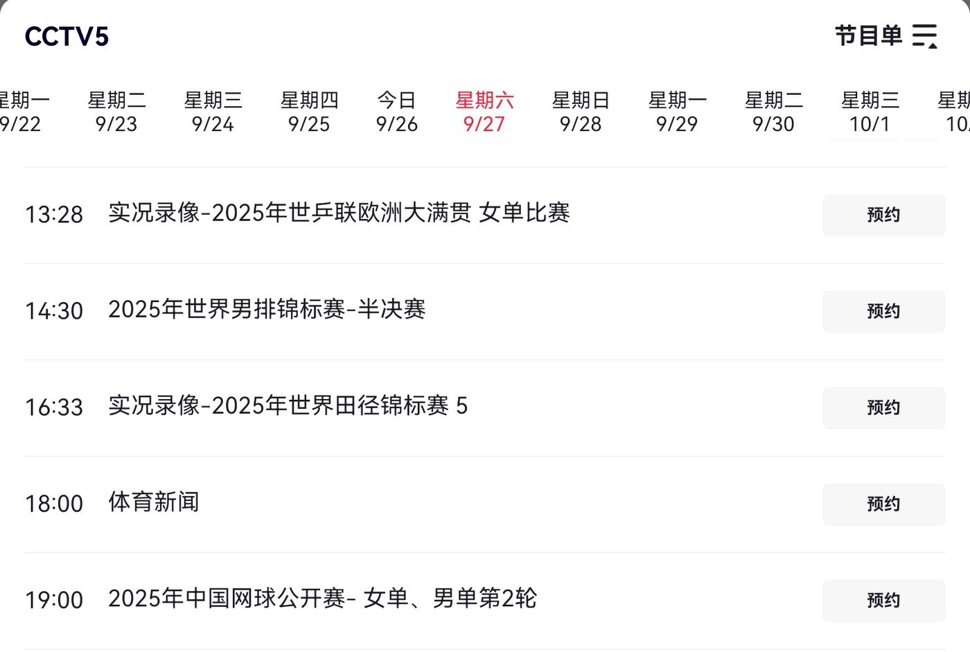 The live broadcast plans for CCTV-5 and the Yangshipin app are shown in the image below.