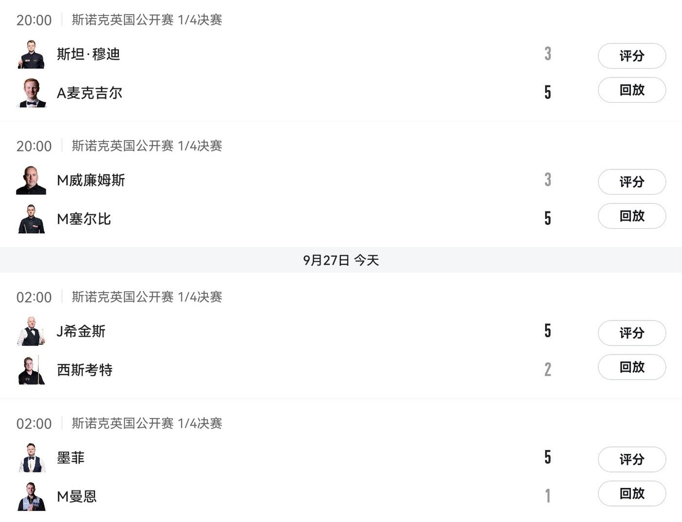 The quarterfinals were contested in a best-of-9 frames format, with the match details shown in the figure below.