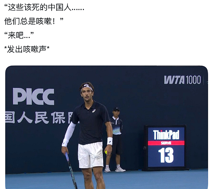 During the latter part of the Musetti vs. Pericard match, Musetti became displeased with some spectators repeatedly coughing in the stands. He responded by coughing back and allegedly insulted Chinese spectators, saying, "Those damn Chinese, they keep coughing, come on, cough." Some fans clarified that the coughing came not from Chinese fans but from French supporters of Pericard. Regardless, Musetti’s insult towards Chinese people is unacceptable, and he will lose their respect from now on.