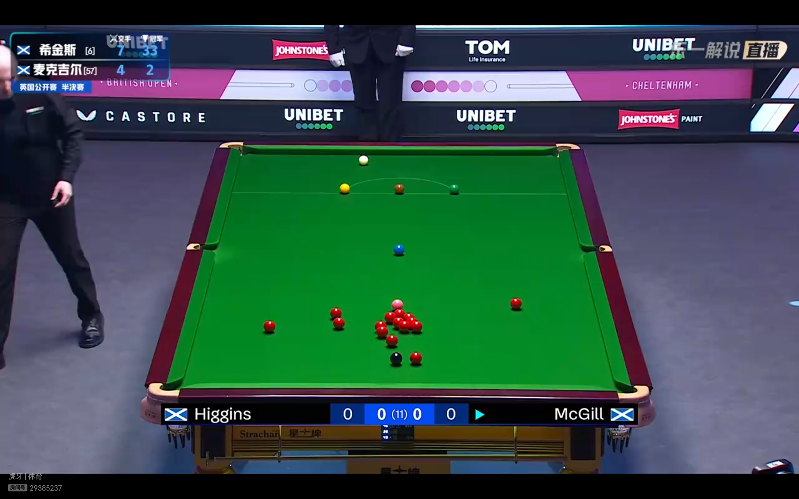 Migu Video and Huya streaming platforms are offering free live coverage of the Snooker UK Open semi-final between Higgins and McGill.