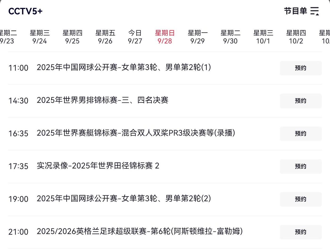 The live broadcast schedule for CCTV-5+ and Yangshipin is shown in the image below.