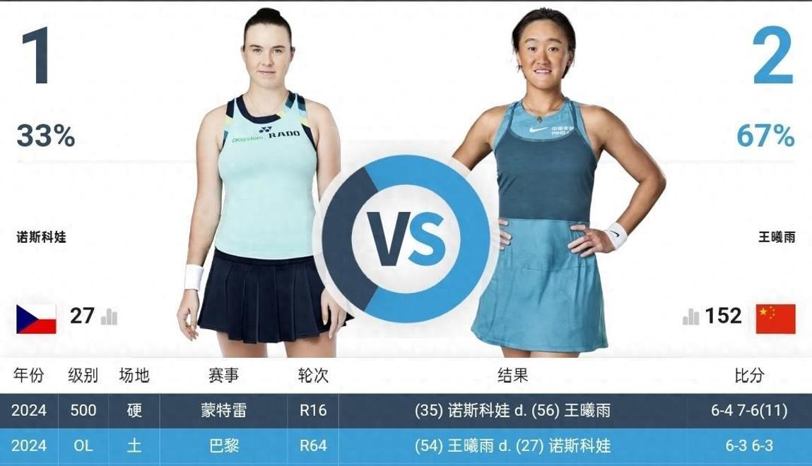 With Wang Xiyu's exit, the hoped-for third-round meeting with Zheng Qinwen was dashed, and Noskova became the next opponent for China's top player.