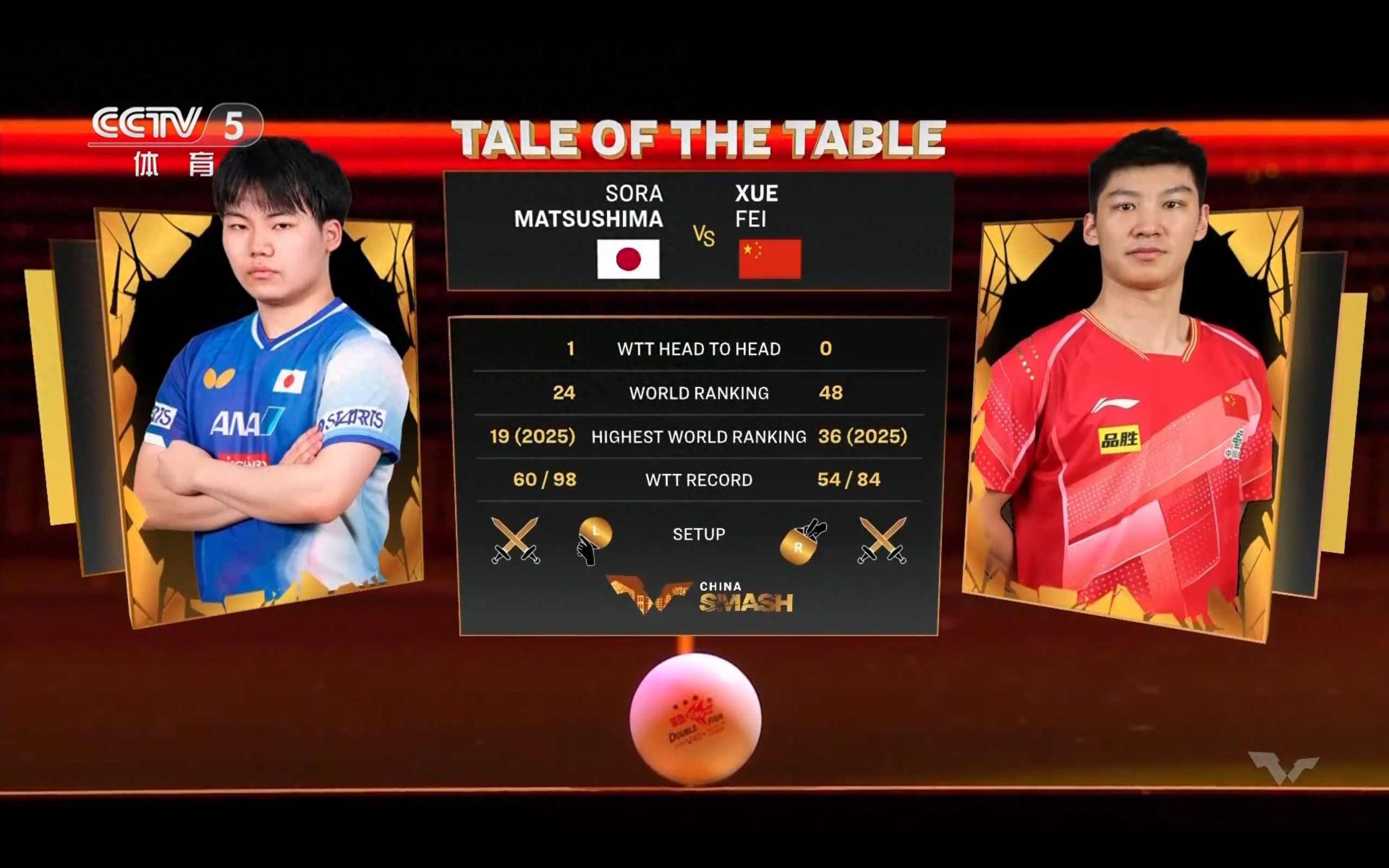 CCTV-5 and Yangshipin are live streaming the WTT China Grand Slam match featuring Xue Fei versus Matsushima Hikaru.