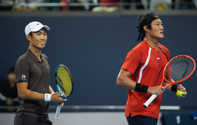 In men's doubles: In a first-round match, the wildcard Chinese pair Shang Juncheng/Zhang Zhizhen lost 3-6, 6-7(6) to Andrioz/Ginard, exiting in their debut.