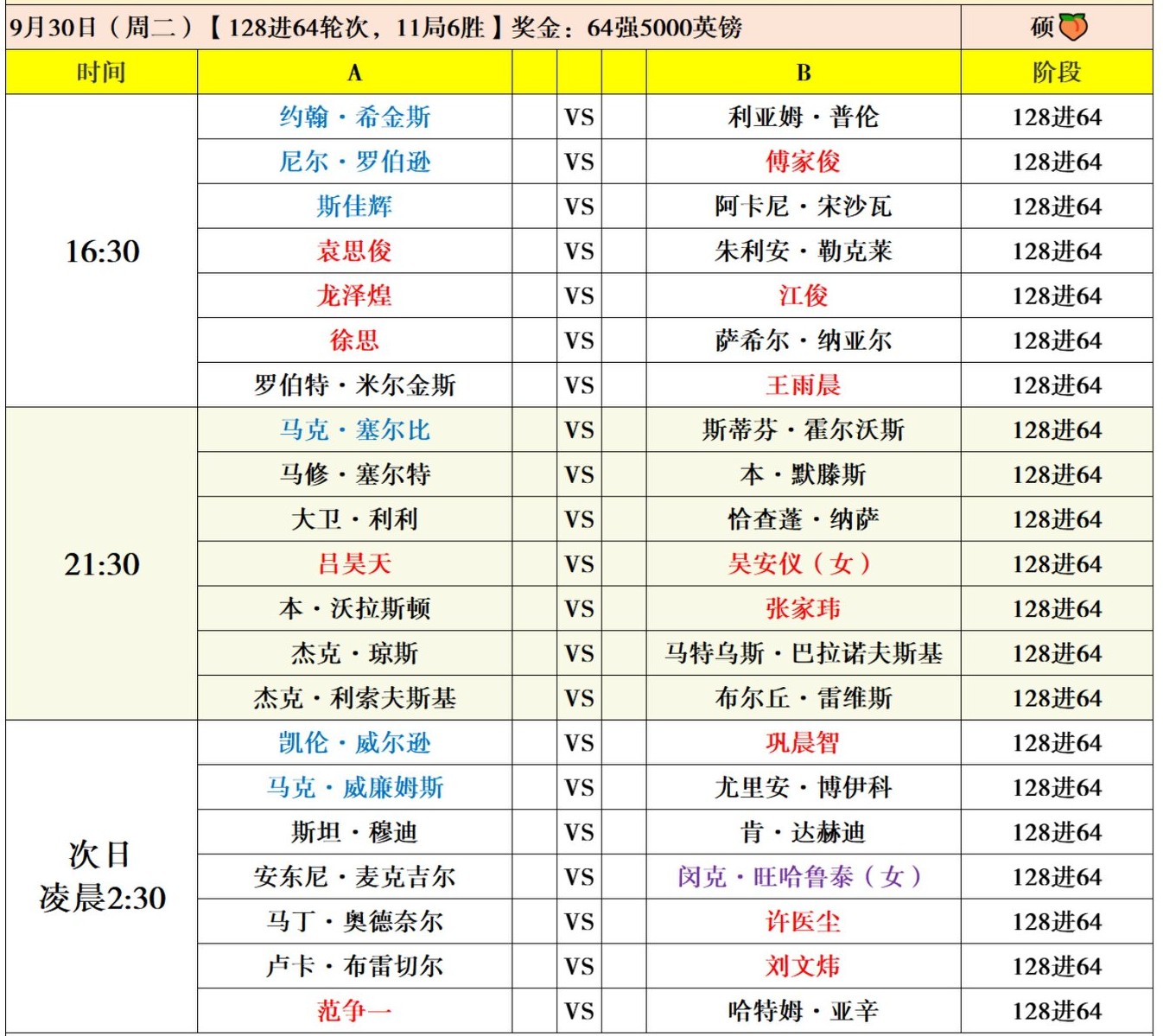 Details of the national players competing tomorrow are shown in the image below, including more than ten players such as Si Jiahui, Lv Haotian, and Fan Zhengyi. The matches will be streamed for free on Migu Video and Huya platforms.