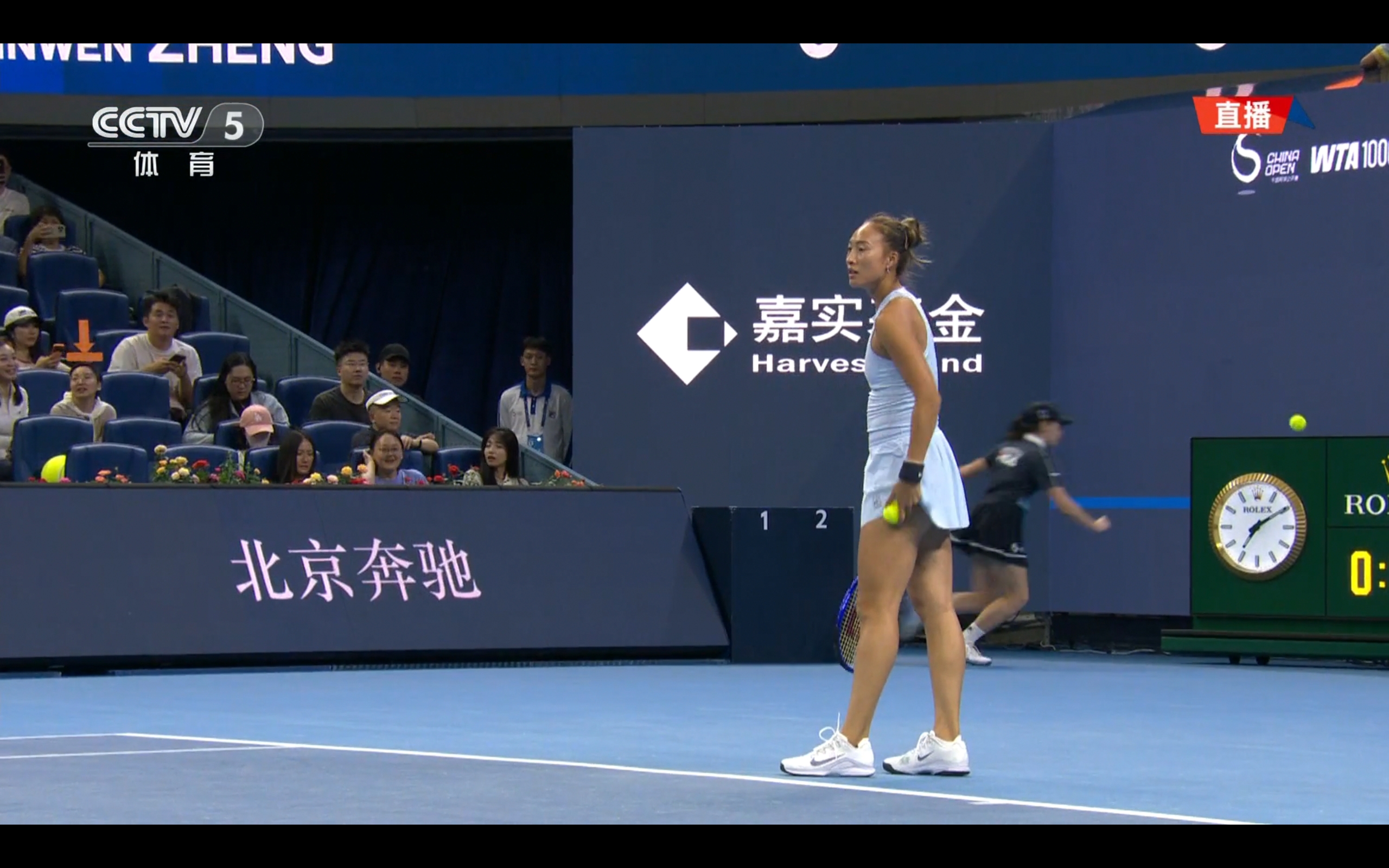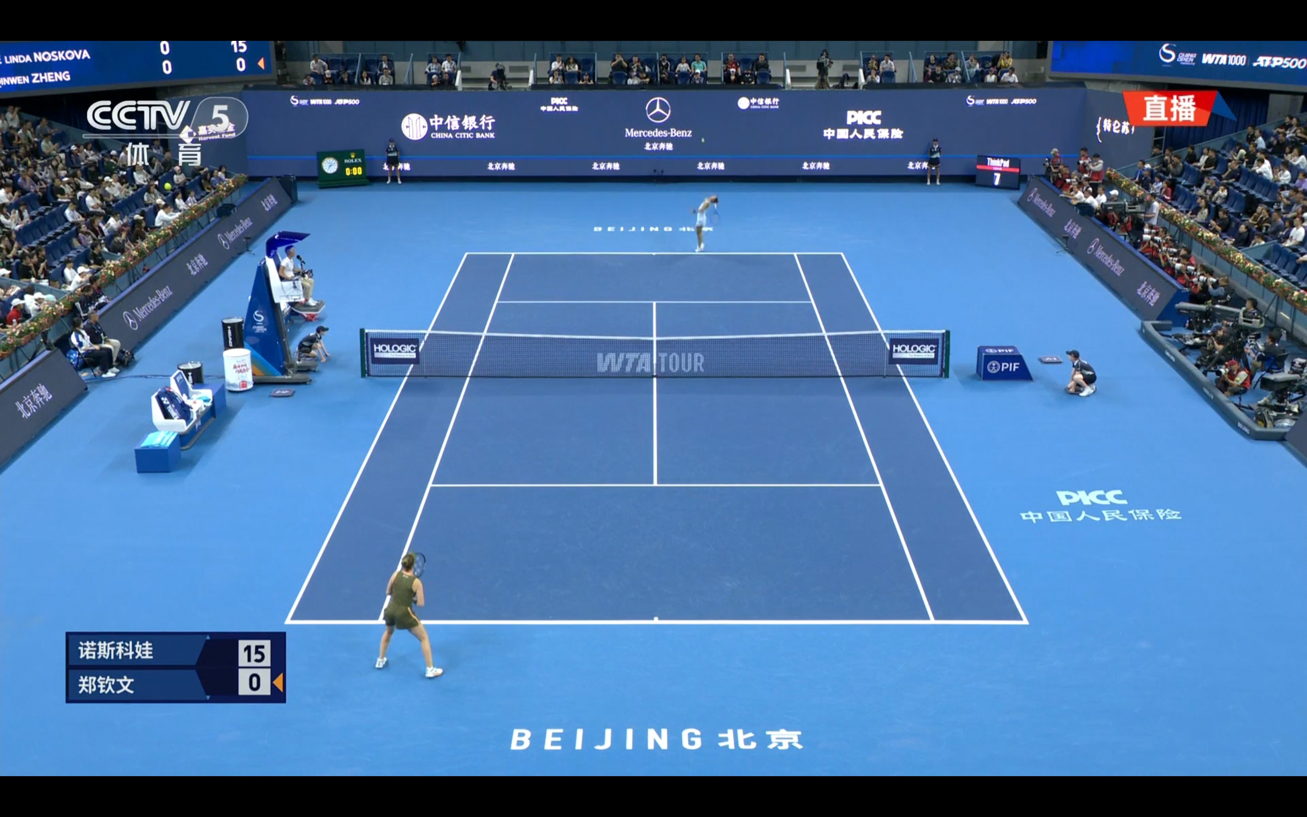 CCTV-5 and CCTV are live-streaming the third round match between Zheng Qinwen and Noskova at the China Open.