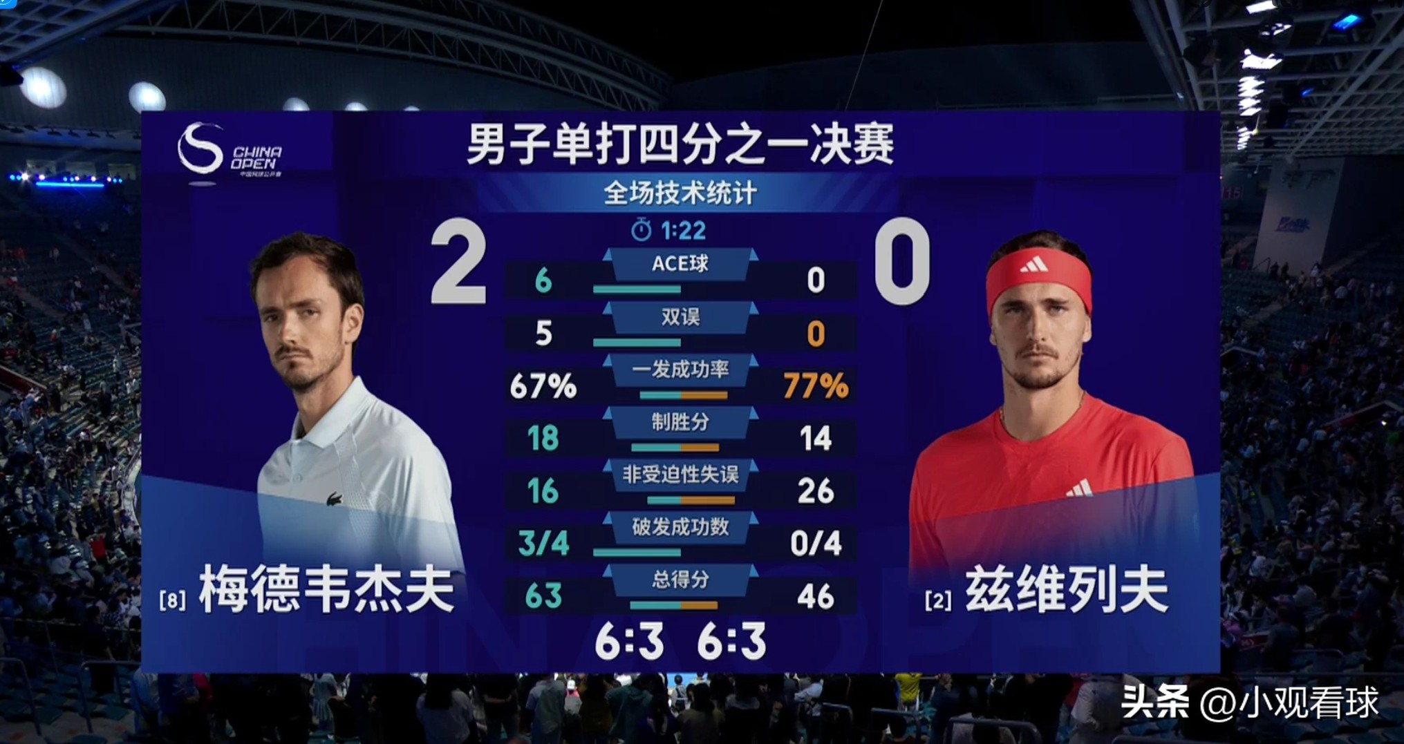 Despite Medvedev’s poor form and falling to 18th in ATP rankings, Zverev remains unable to overcome him. In the China Open quarterfinals, Medvedev beat second seed Zverev in straight sets 6-3, 6-3 to reach the semifinals.