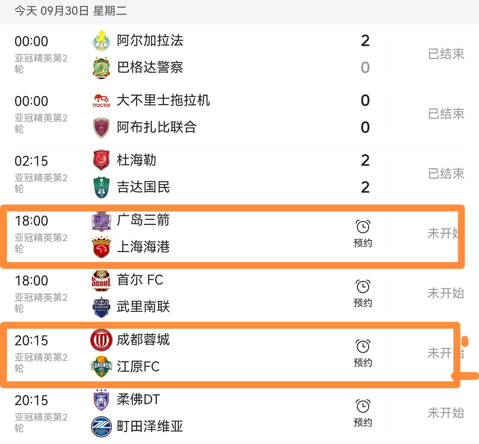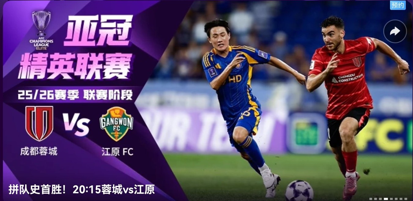 The second round of the AFC Champions League Elite Tournament begins today (2025.9.30), featuring Sanfrecce Hiroshima vs Shanghai Port and Chengdu Rongcheng vs Gangwon FC, broadcast on Migu Video and iQIYI.