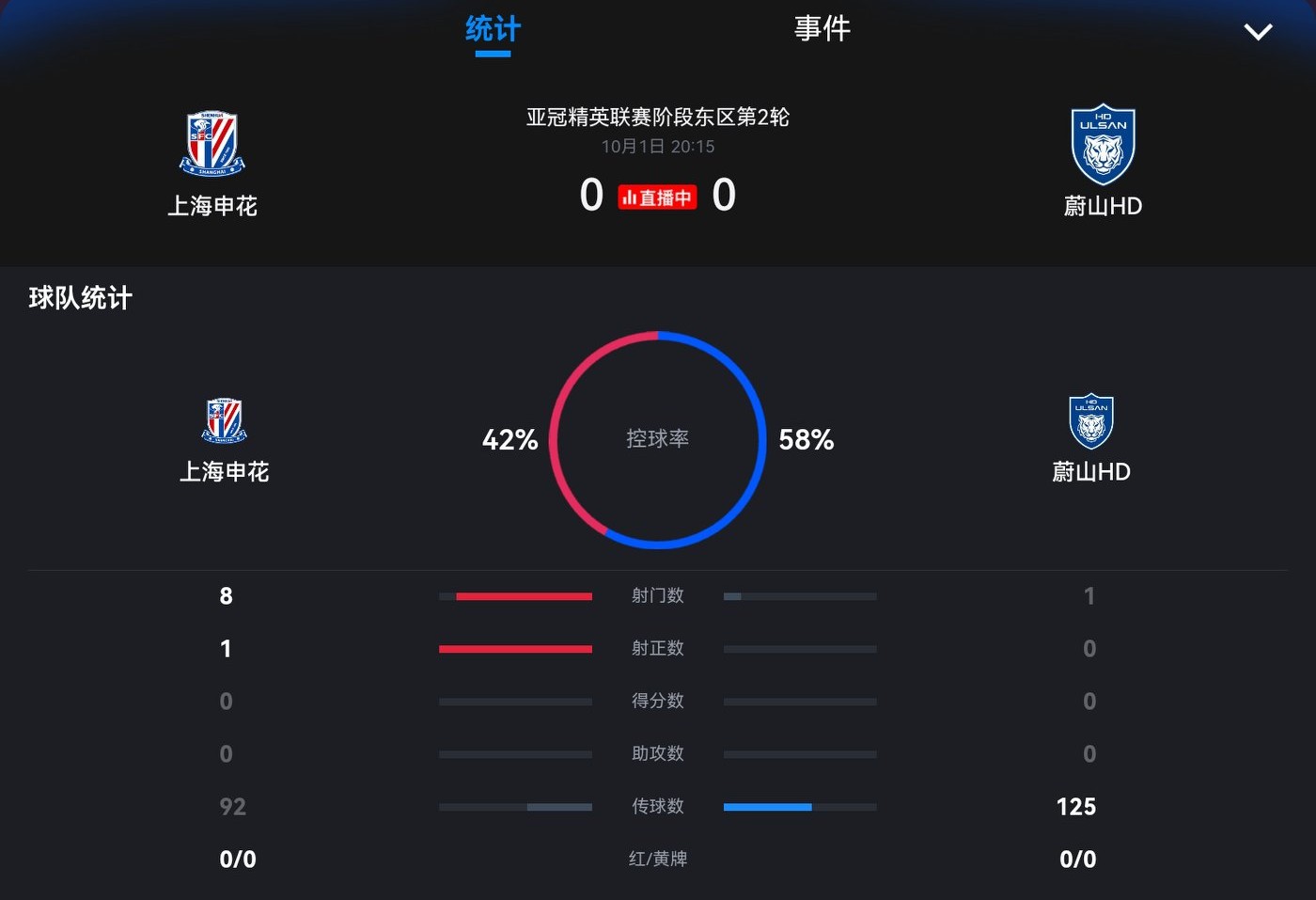 Shanghai Shenhua is the home team—do they have a chance to win and claim three points? Based on current statistics, it seems dangerous. Shanghai Shenhua’s possession at home is far behind Ulsan Hyundai’s possession on the road. What does this suggest? It indicates that Shanghai Shenhua is focusing on defense, while the opponent is more attack-oriented. In football, defense alone can’t stop attacks; if the home team doesn’t push forward, when will they attack?
