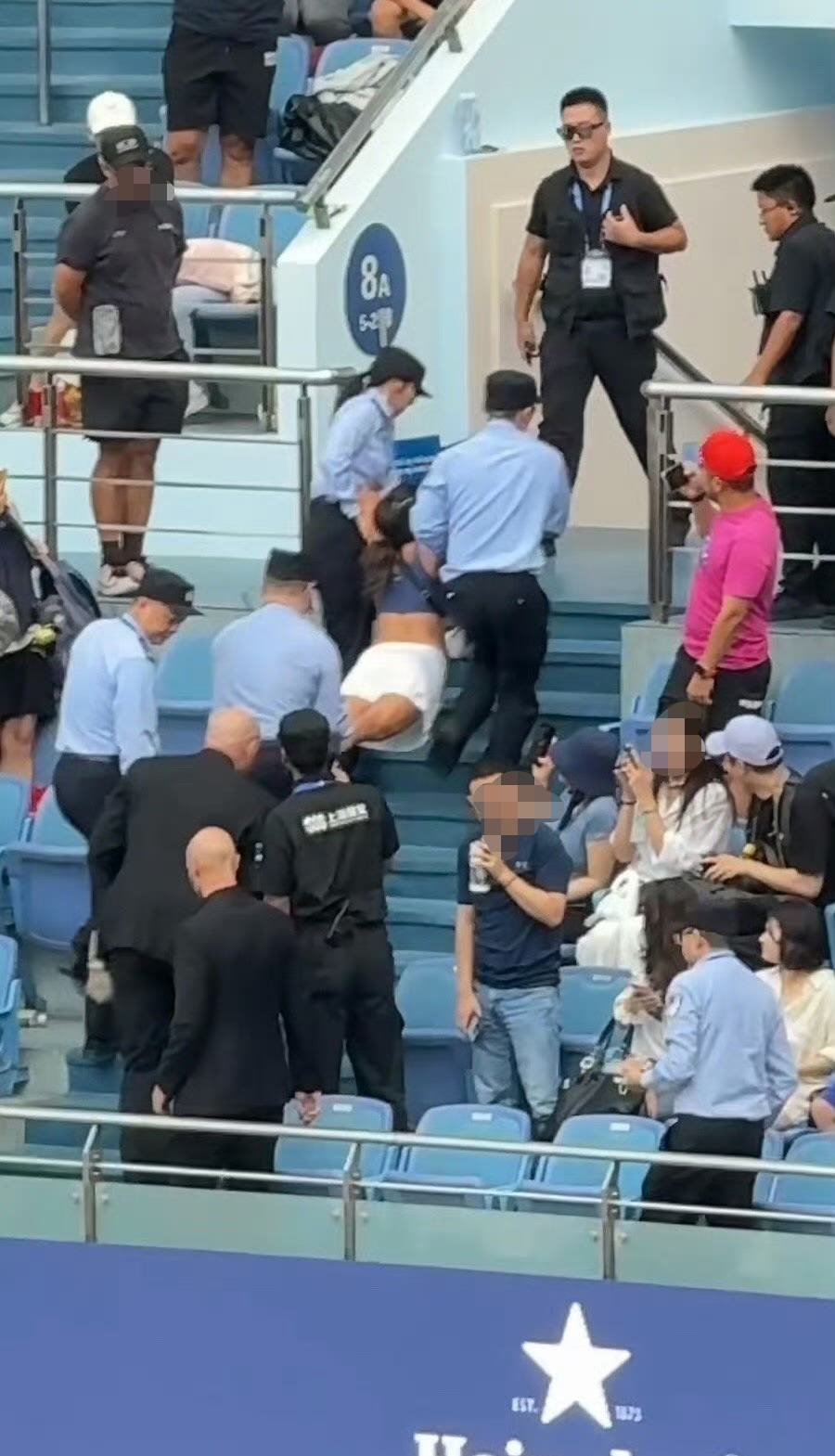 During the second match this afternoon at the central court, Italian player Berrettini was competing when a female spectator—allegedly a fan of Berrettini—brought a mixed-race child and kept loudly screaming, disrupting the match. The chair umpire warned her on site, and security tried to intervene immediately. However, she pulled out her passport and ID, repeatedly showing them to security, claiming they had no right to interfere. She then provoked security staff and engaged in physical contact with them using her hands and shoulders, forcing the match to be halted. After security escorted her child away, several officers carried the woman out of the arena, and the crowd applauded the Shanghai Masters' handling of the situation!