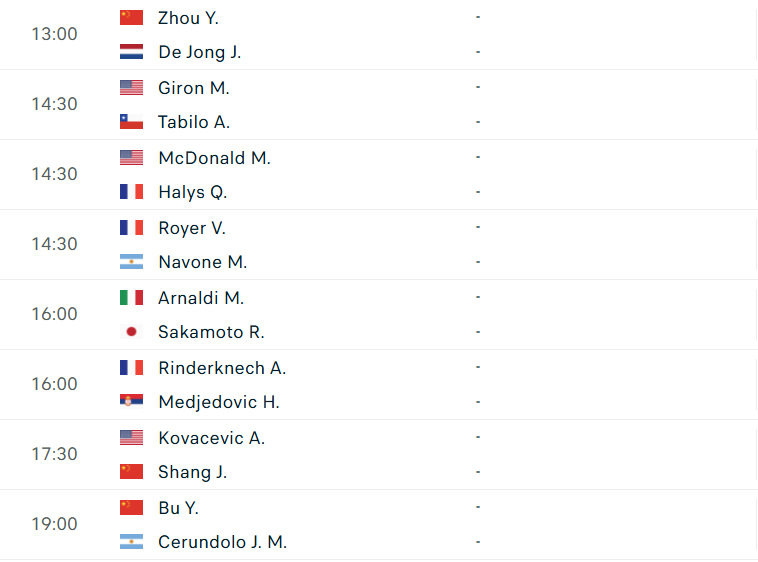 The ATP 1000 Shanghai Masters 2025 will continue its second day with the remaining matches of the first round (Round 1/64). Seeded players have not yet competed in this round, but there are still thrilling matches, especially involving home country representatives: Shang Juncheng, Wu Yibing, Zhou Yi, and Yu Bunchaokete.