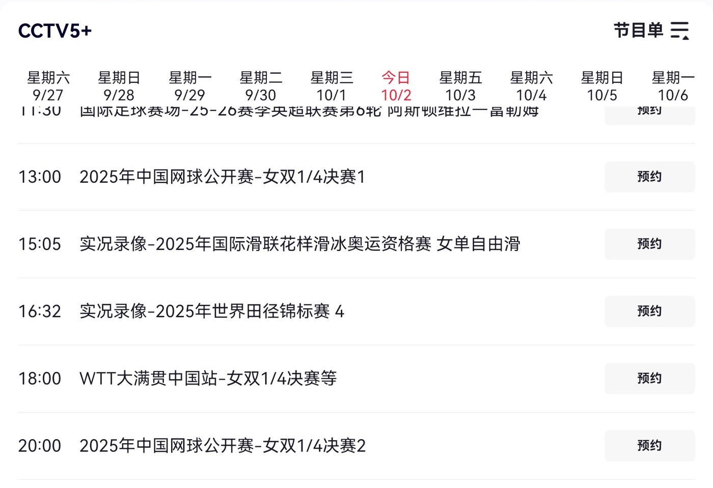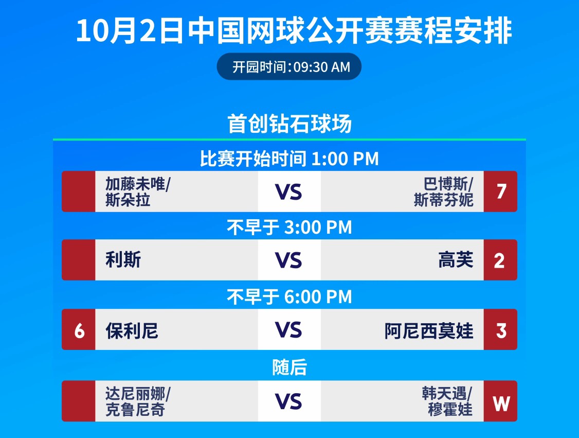 Today's China Open schedule (October 2, 2025) includes players such as Gauff and Paolini, with live broadcasts on CCTV-5.